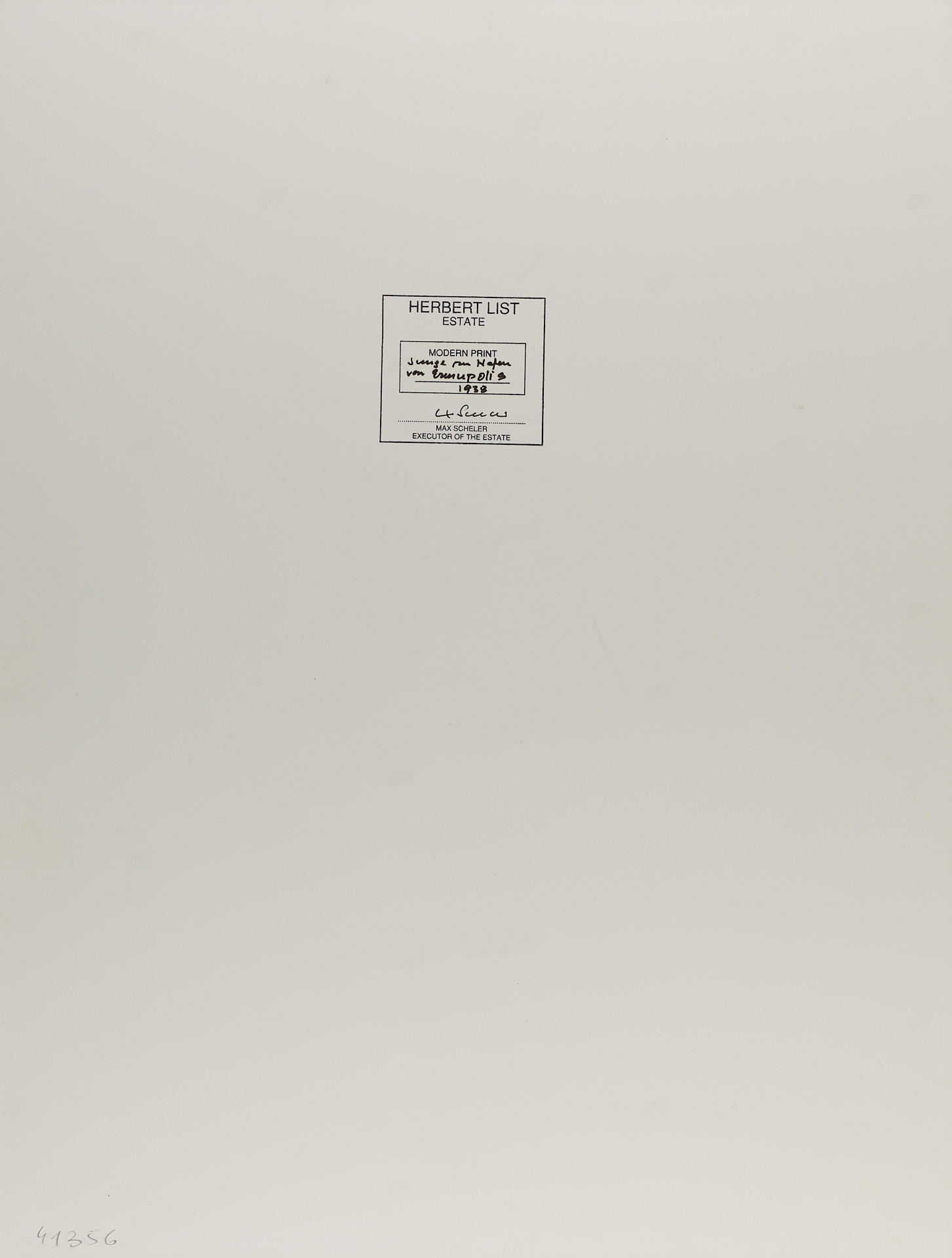 Gelatin silver print, printed in the 1990s by Max Scheler 29,6 x 24,6 cm Photographer's estate stamp with handwritten title and date on the reverse, signed by Max Scheler in ink on the reverse LITERATURE Max Scheler / Matthias Harder (ed.), Herbert List. Die Monographie, Munich 2000, p. ?