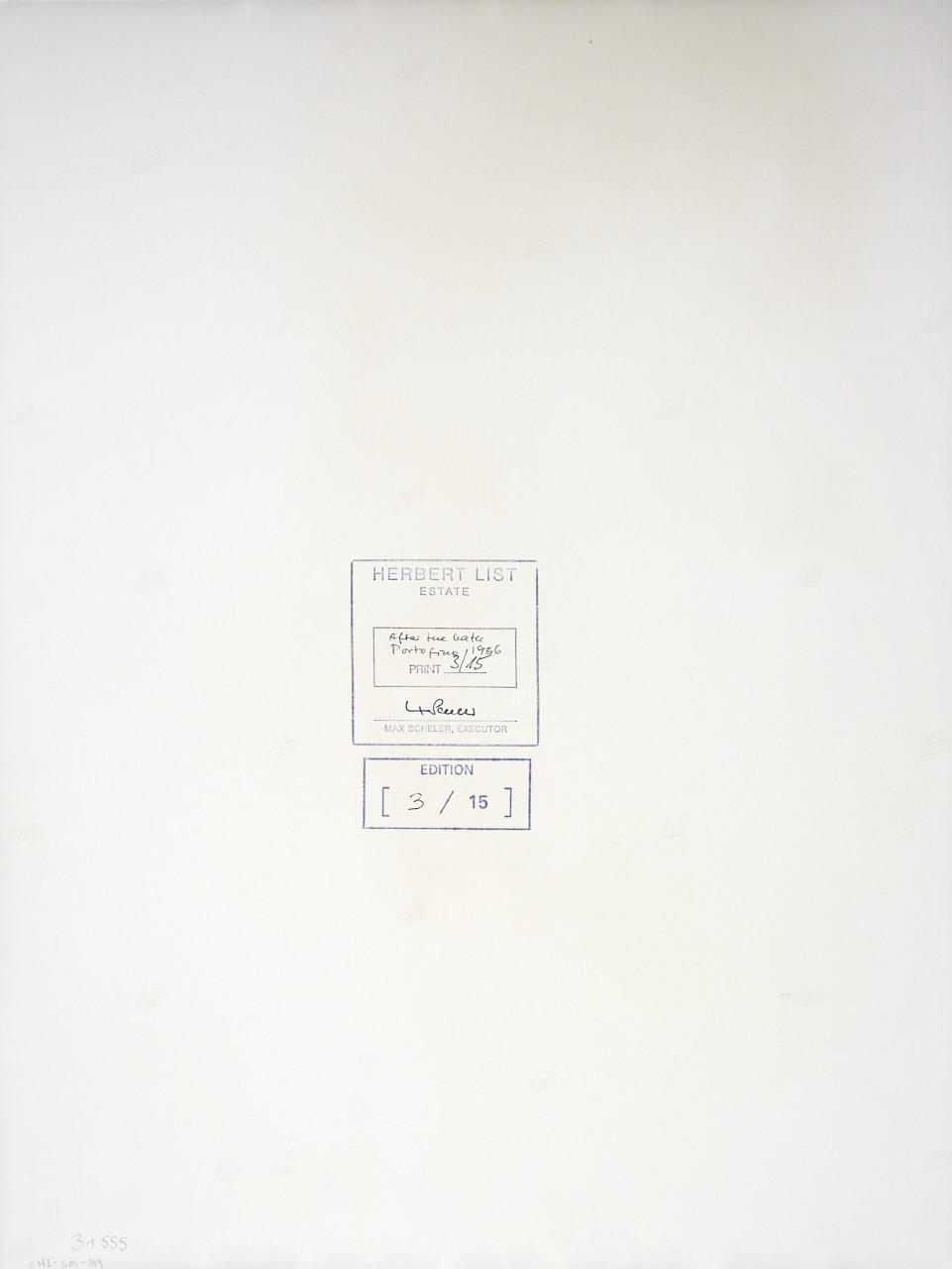 Gelatin silver print, printed in the 1990s 29,8 x 23,4 cm Photographer's estate stamp with handwritten title, edition number and date on the reverse, signed by Max Scheler in ink on the reverse, edition no. 3/15