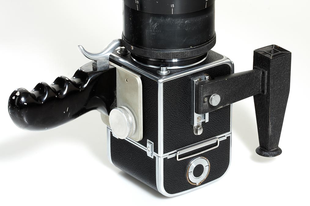 only 20 sets of this outfit were produced, 10 of them for the Swedish army. This outfit comes without military engravings. Hasselblad 1000F with Dallmeyer Dallon Tele-Anastigmat 5.6/508mm no.487988, grip, special finder for 508mm, 3 matching film cassettes (CT30189, CT29015, CT31165), magnifier, 3 filters, strap, instructions, both caps, in original wooden box