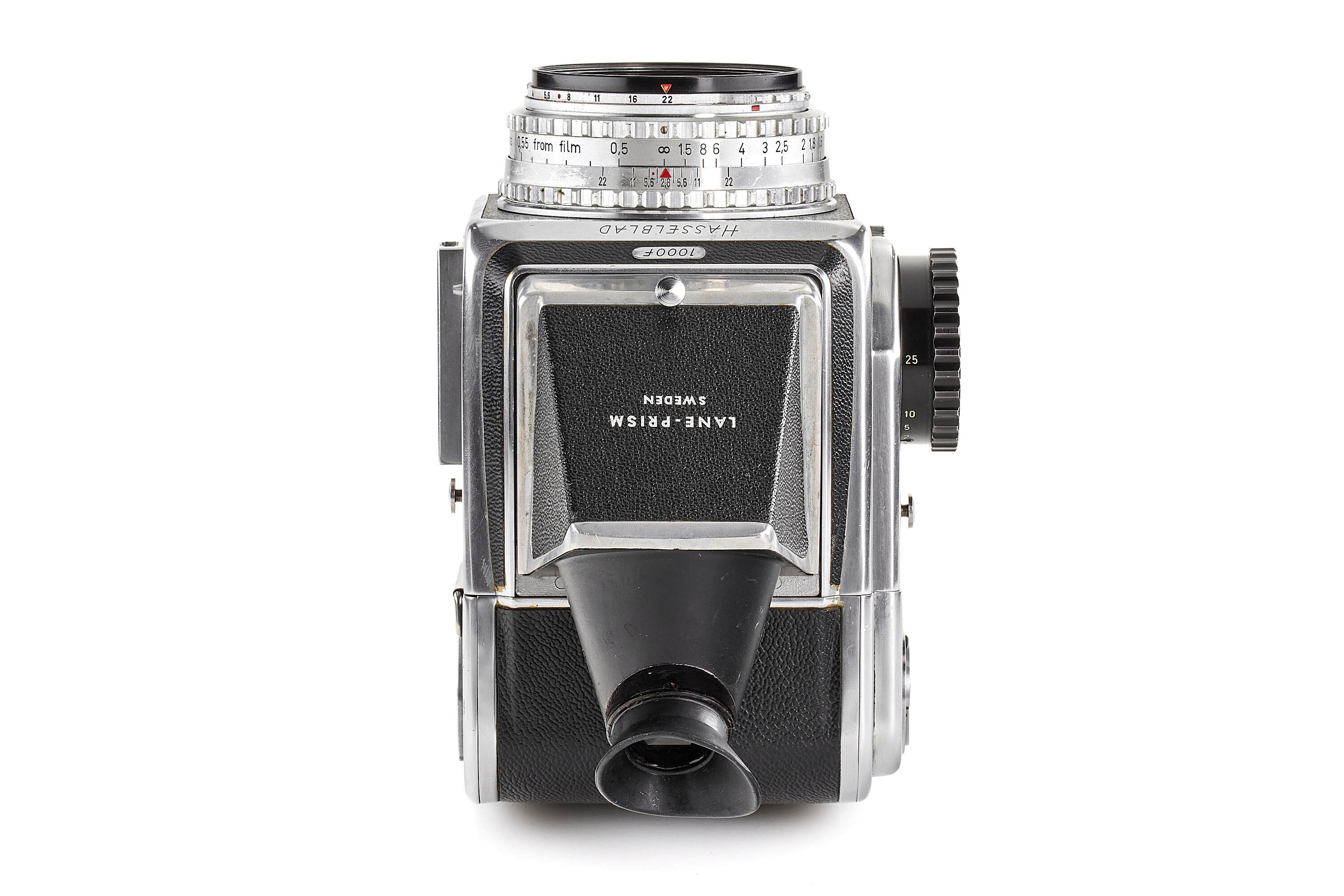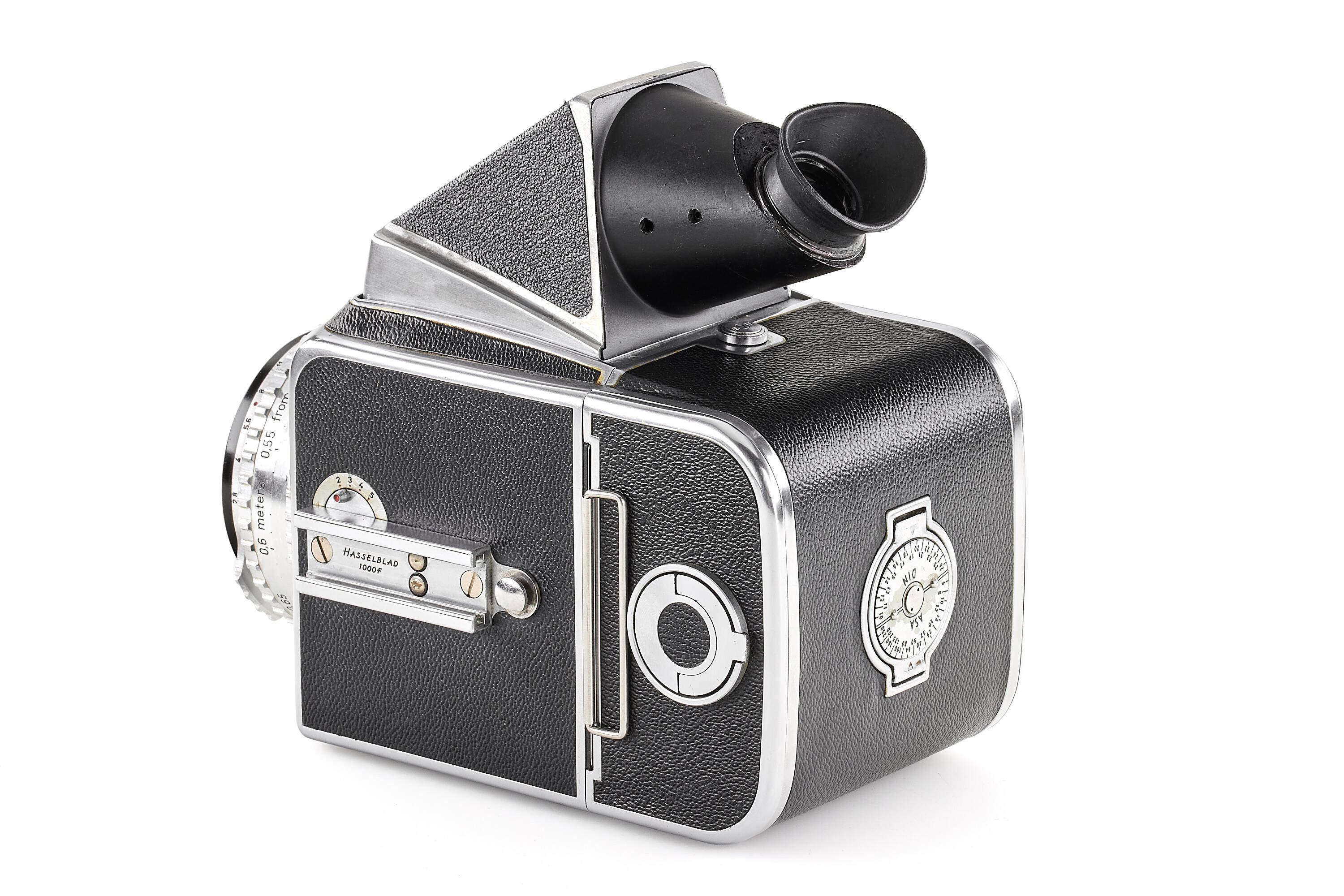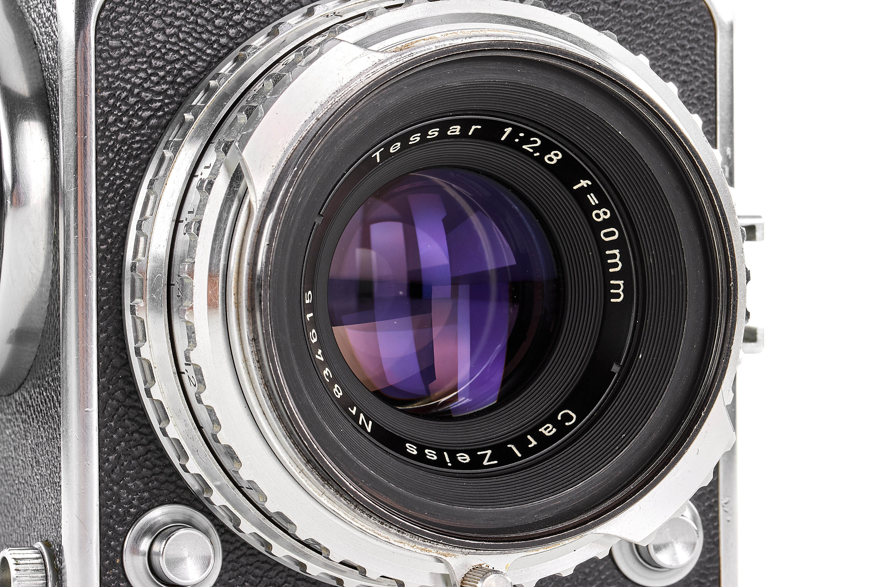 Interesting early body in very good condition, with matching early meter scale Tessar 2.8/80mm no.834615 with clean and clear optics (front lens cap), matching early magazine no.CI17943 (slider) and uncommon 45° Lane-Prism with integrated loupe.