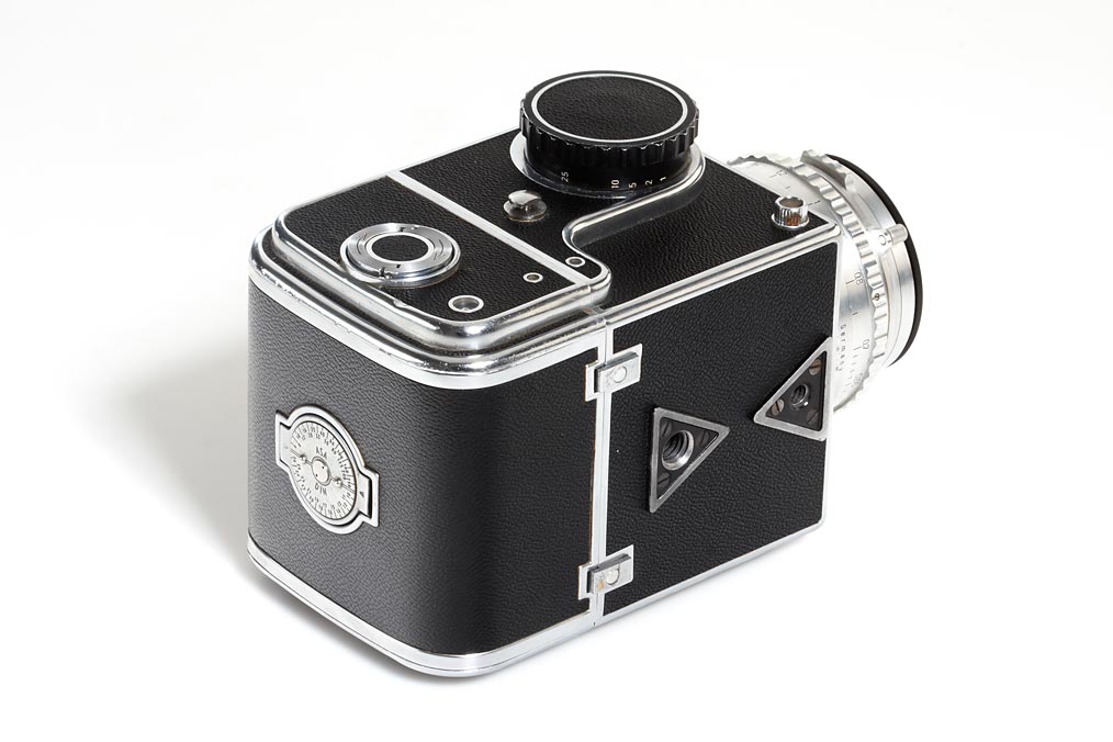 second model in excellent and perfect working condition, with Opton Tessar 2.8/80mm T no.589129 (cap), matching magazine no.CI18577