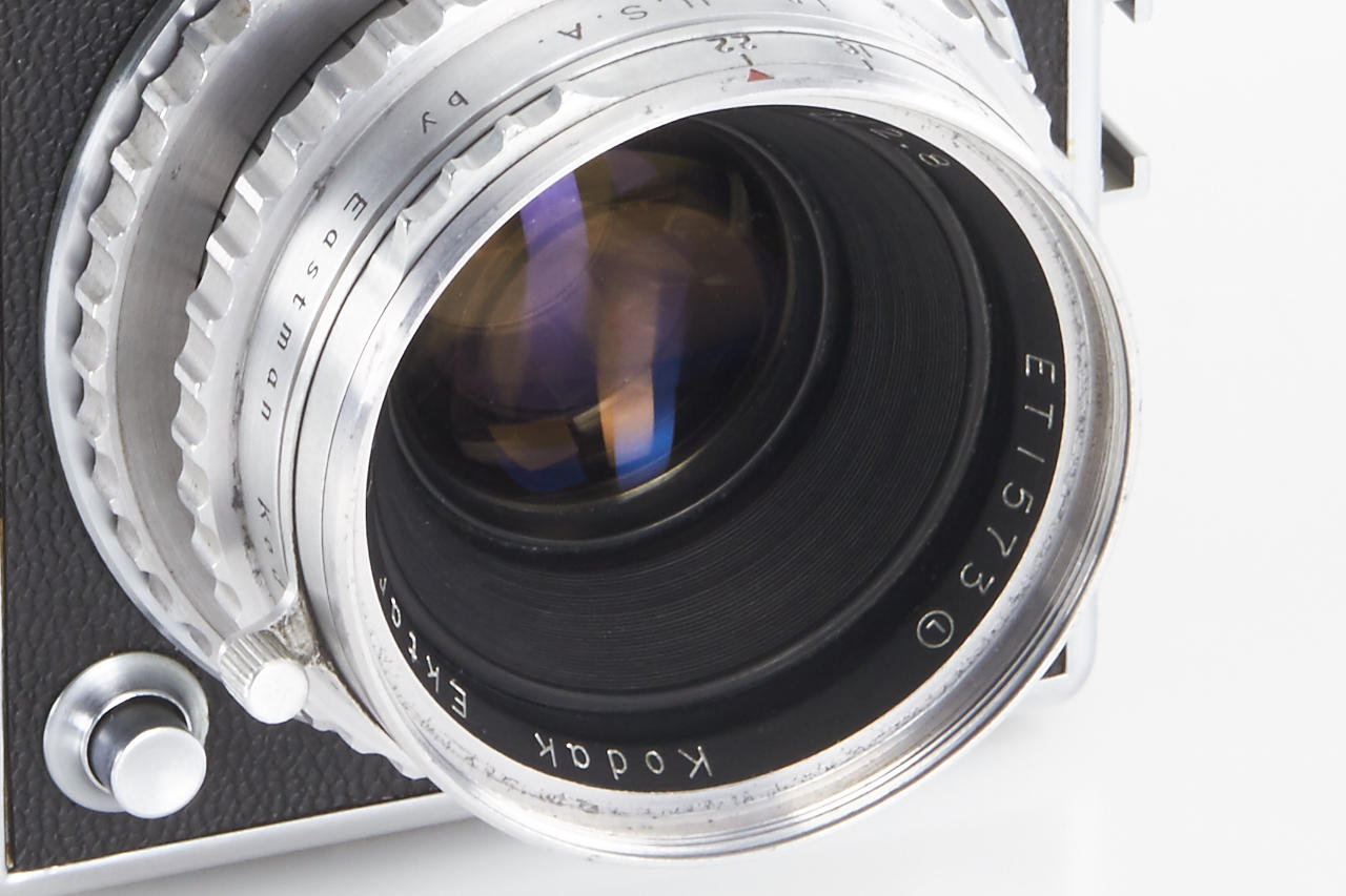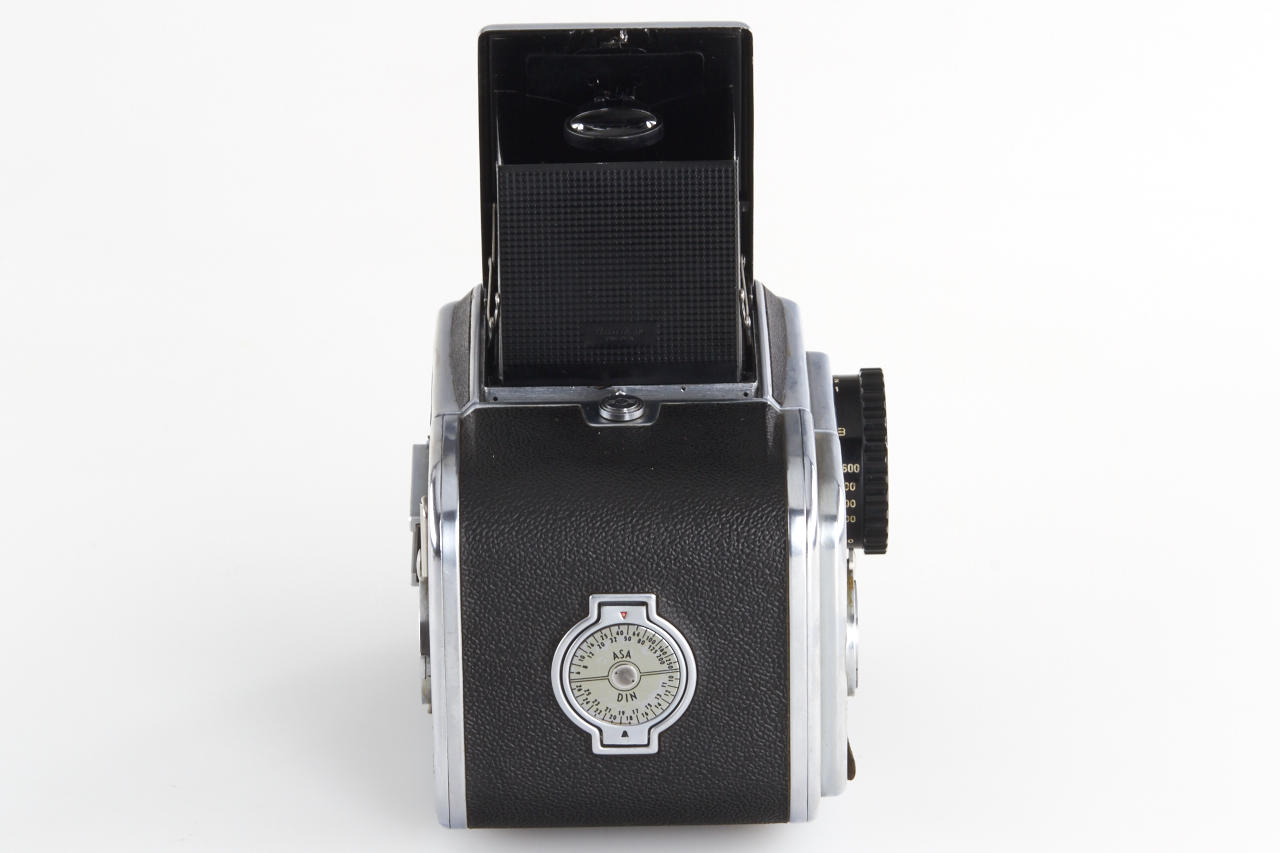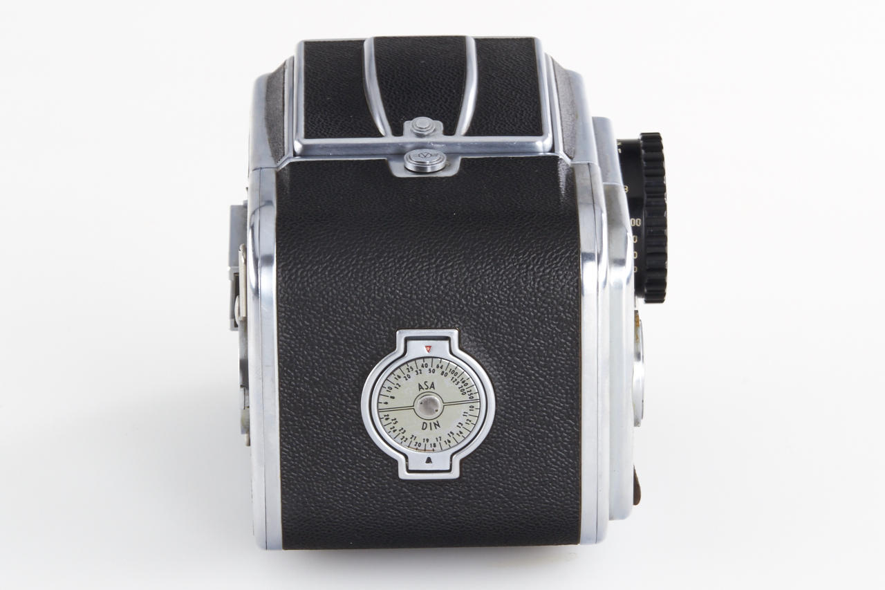 excellent first model Hasselblad in original condition with matching Kodak Ektar 2.8/80mm no. ET1573 (1949, clean optics) incl. original metal hood, 120 magazine no. CP15965 with matching film insert CP15965