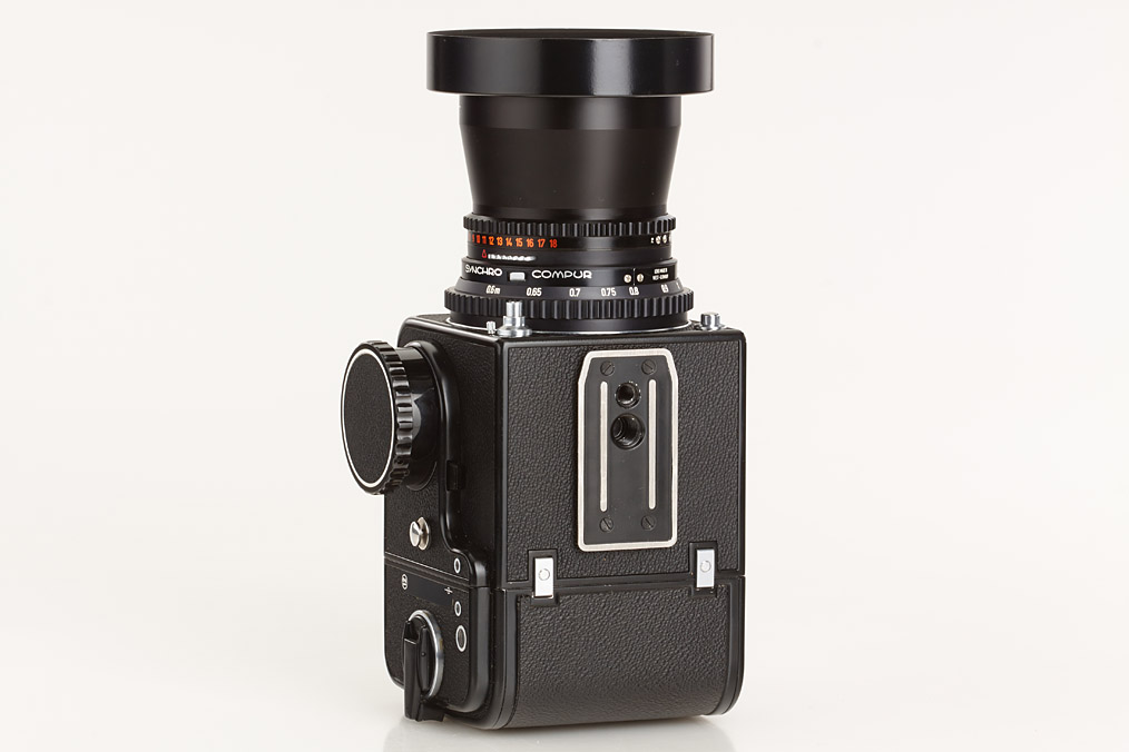 black body in almost mint condition and good working order with waist-level finder, matching magazine 12 no.UE3137451 (film reminder latch missing) and black Distagon 3.5/60mm T* no.5733023 (hood)