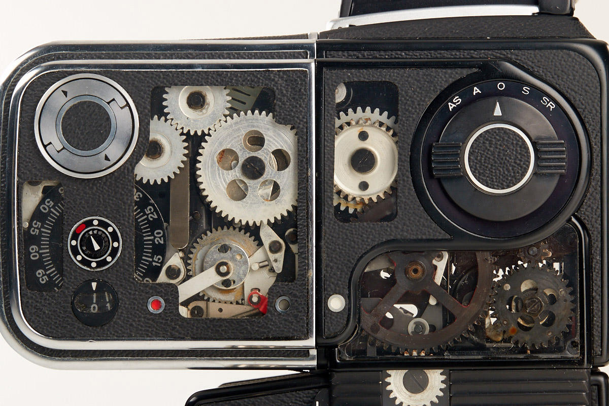 very rare original black Hasselblad 500 EL/M cut-away with chrome cut-away 70mm magazine no.UC 311664, only approx. 25 of these demonstration cameras were produced, Planar 2.8/80mm T* no.B10317 with auto diaphragm control, in very fine condition