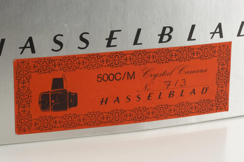 Crystal Camera, handmade 1:1 glass model of a Hasselblad 500C made by Lindshammer of Sweden, mint, in original maker's box