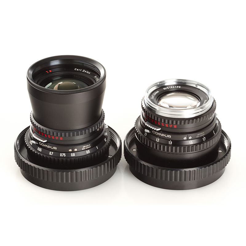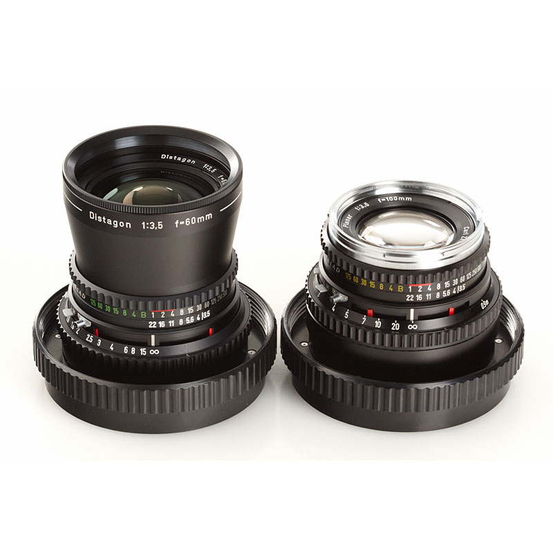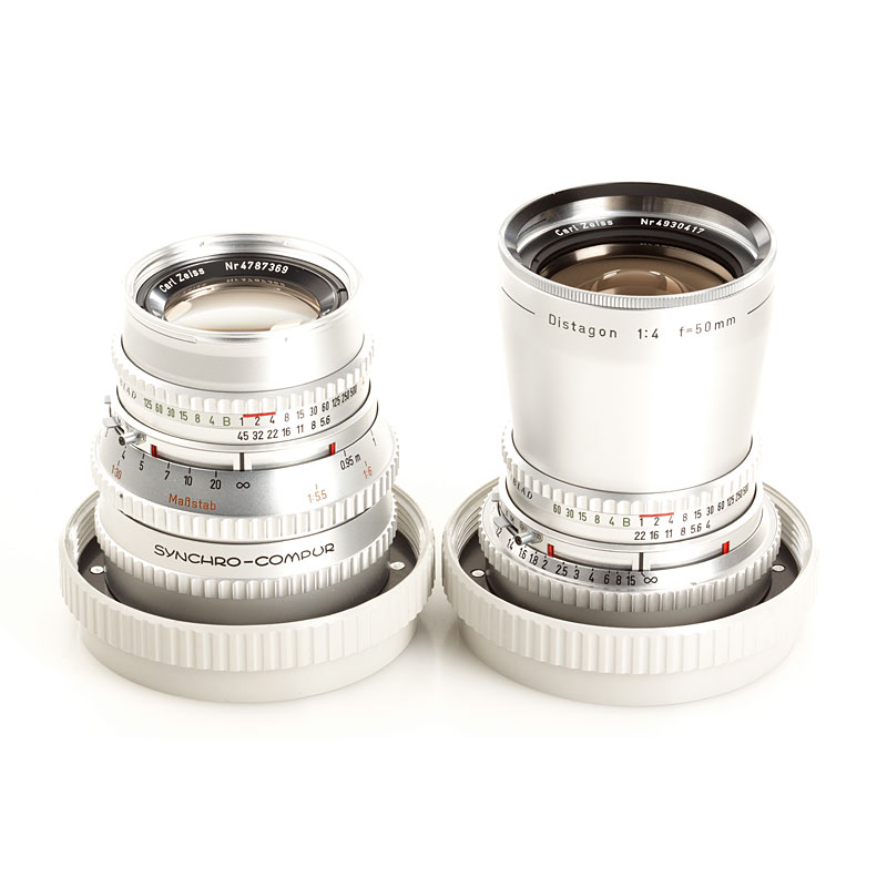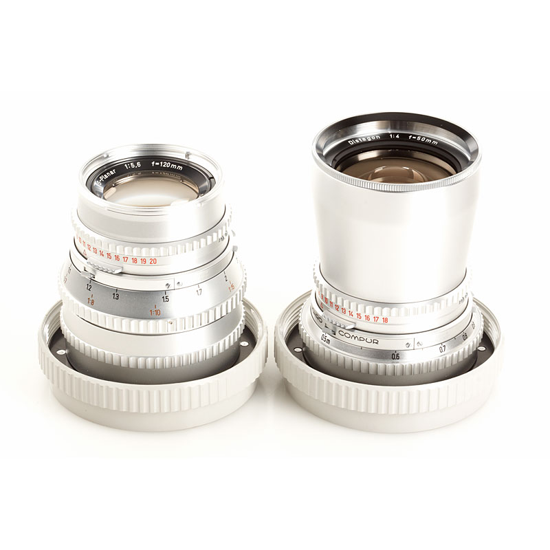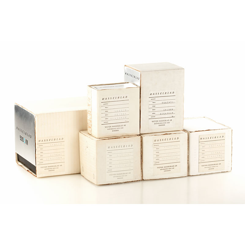 brand new and never used outfit including chrome body with A12 magazine no.UV186509, chrome Distagon 4/50mm no.4930417, black Distagon 3.5/60mm T* no.5860451, black Planar 3.5/100mm no.5152170 with chrome front ring, chrome S-Planar 5.6/120mm no.4787369 - all complete with original maker's boxes including brown leather outfit case