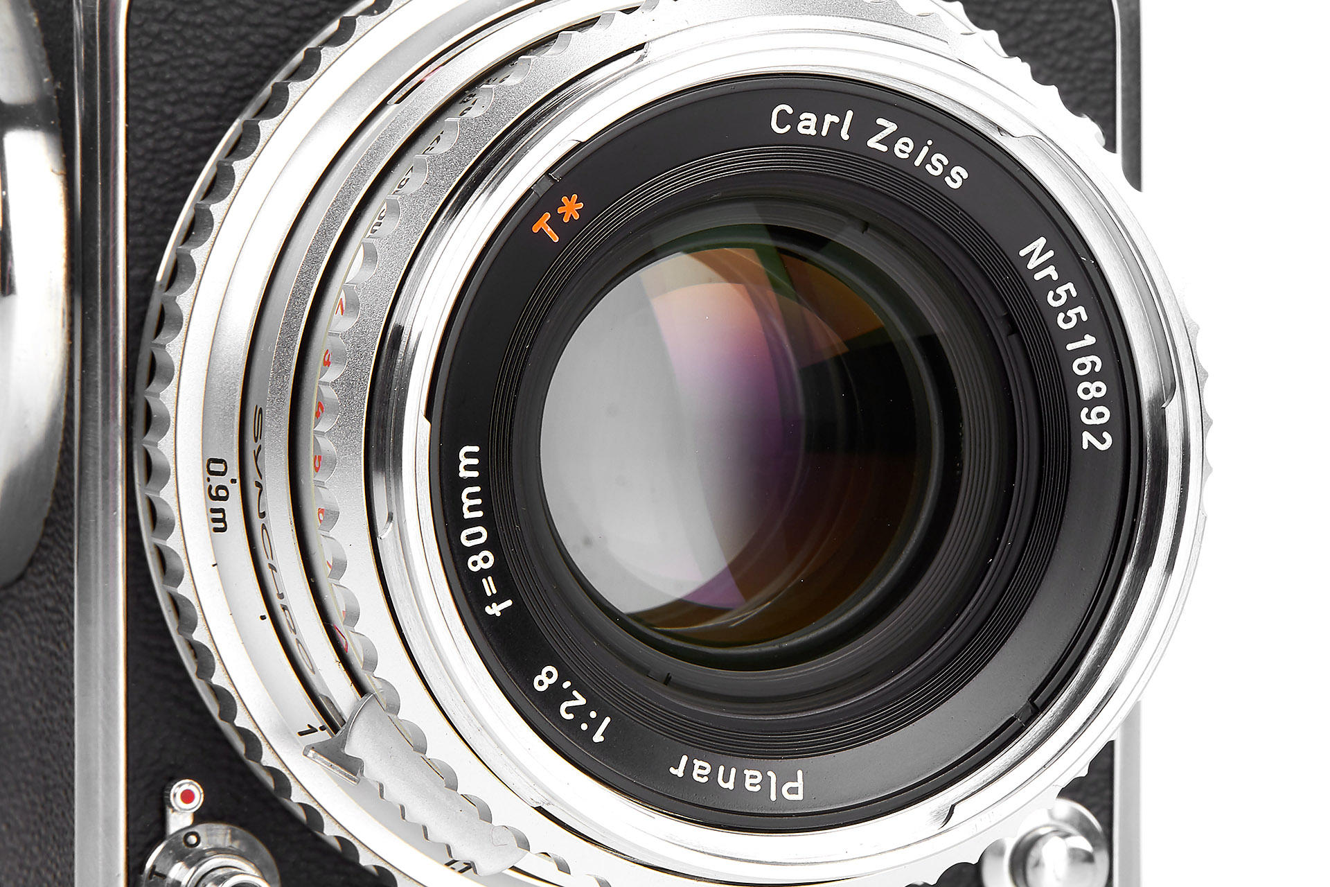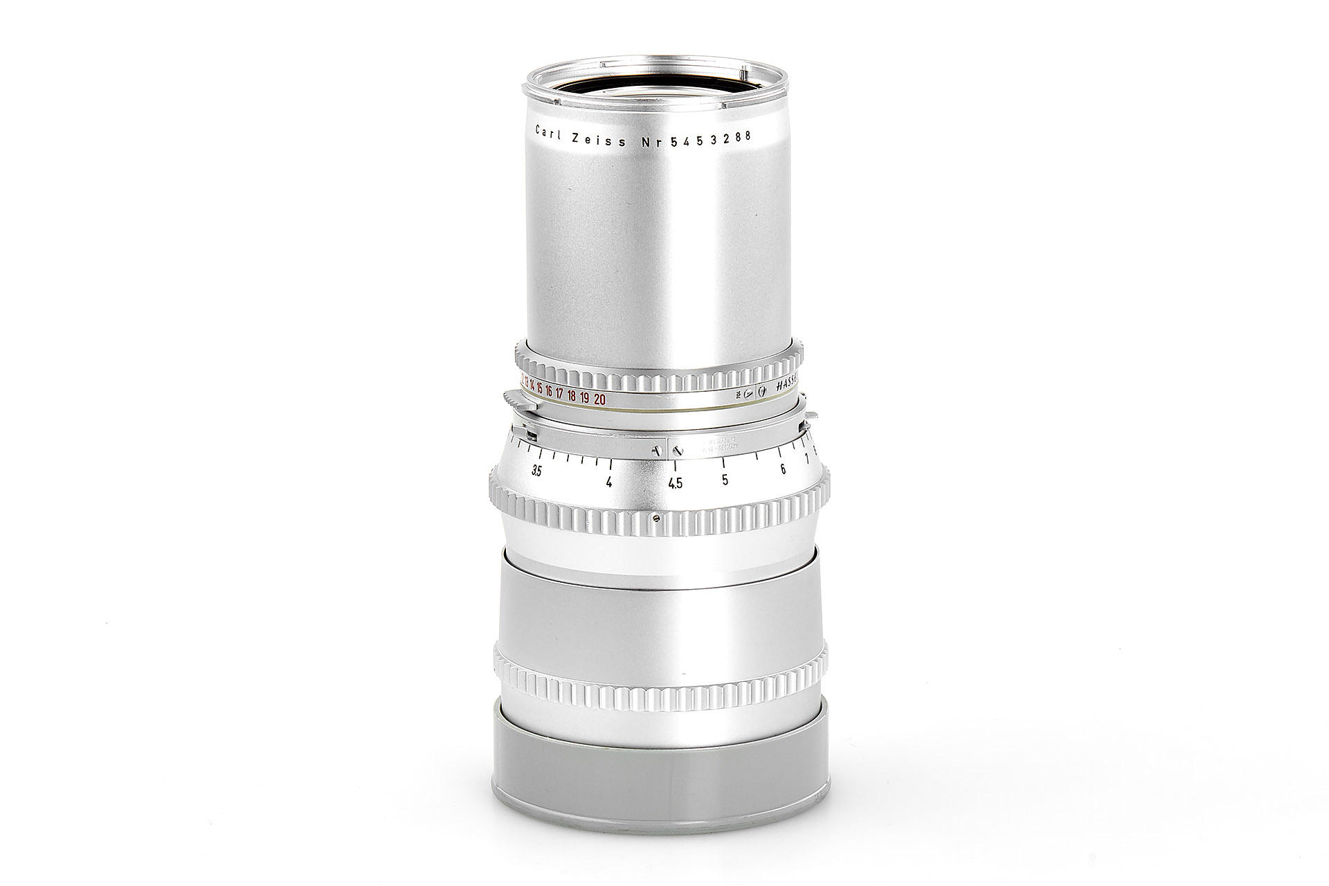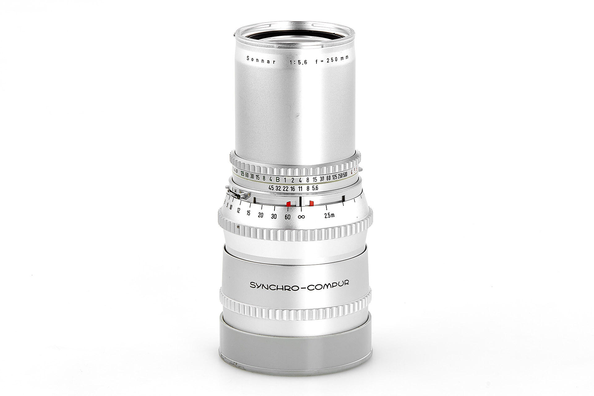 outfit in near mint condition and perfect working order, with camera body, waist-level finder, two A12 magazines no.UH203892 and UH203223, T* Planar 2.8/80mm no.5516892, Sonnar 5.6/250mm no.5453288, caps, strap, three filters, hoods for 80mm and 250mm, everything in original Hasselblad outfit case
