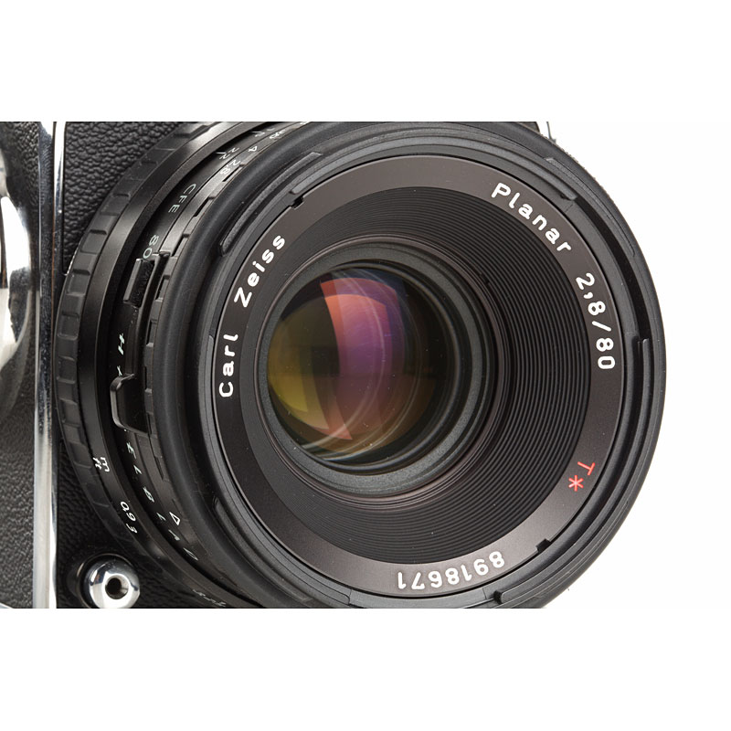 mint chrome body in good working order with matching A12 magazine no.30SC13741, CFE Planar 2.8/80mm T* no.8918671 (cap), papers, maker's box and near mint Polacombi 80/100 magazine with maker's box