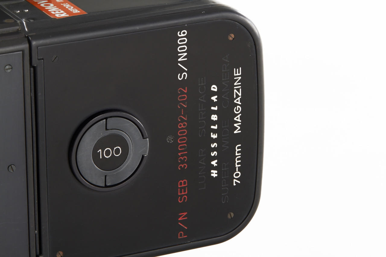 Extremely rare original Lunar Hasselblad produced for the NASA Apollo moon missions. In total about 50 camera were made, 13 of these were left on the moon during Apollo 11-17 missions. The Hasselblad serial number is TRE 12121, the NASA number 1014. It comes with the original reseau plate. The lens is a very rare black Planar 3.5/100mm no.2585912 (NASA type 33100041, NASA S/N 1014), the lens is focused on infinity. With film magazine 70/200 (P/N SEB 33300082-202 S/N 006 no. TU 400054) - the historic camera and lens in very fine and absolute original condition. It comes with the story of the camera by its last owner, the former managing director of Hasselblad Engineering AB.