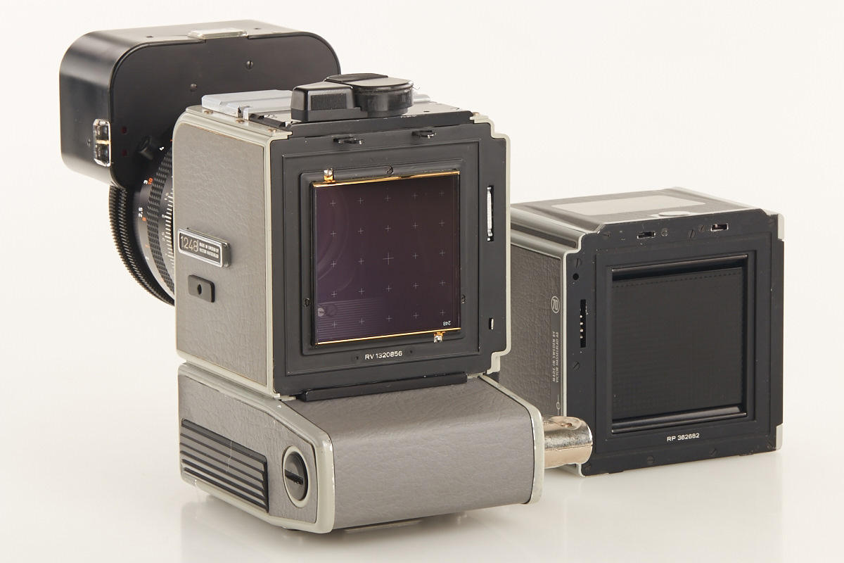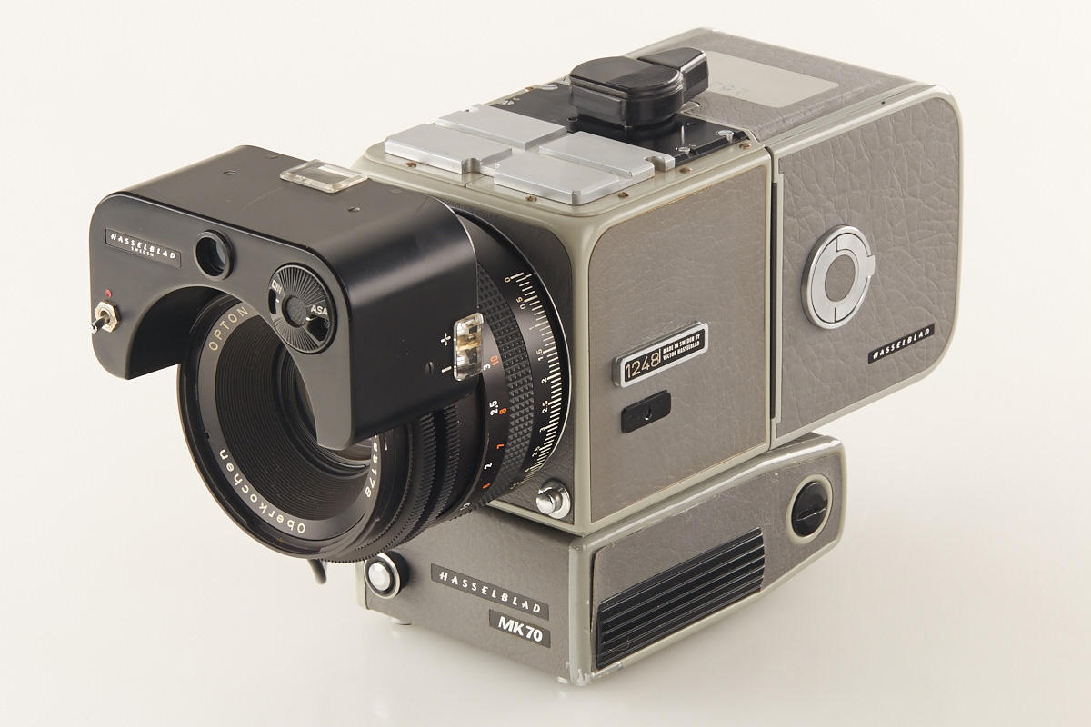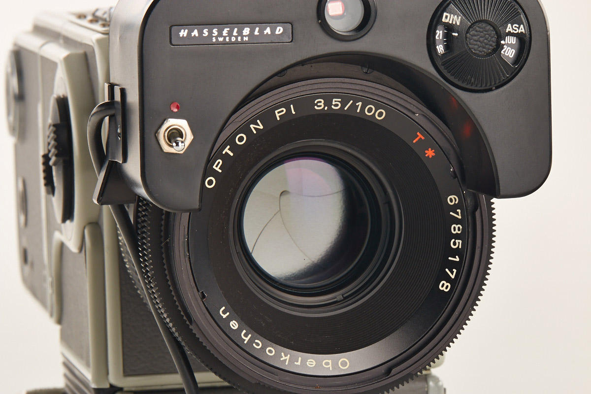 rare special metric version, used for photogrammetry, CF Opton Planar 3.5/100mm no.6785178 with auto diaphragm control (cap), 70mm magazine no.RP362682, this Hasselblad is the commercial version of the Hasselblad 500 EL Data Camera used by NASA for the lunar missions