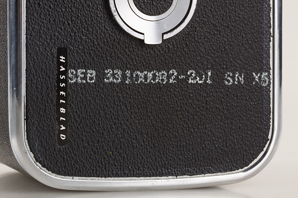 rare Hasselblad magazine with leather coverings marked 'SEB 33100082-201 S/N X5', used in Apollo program