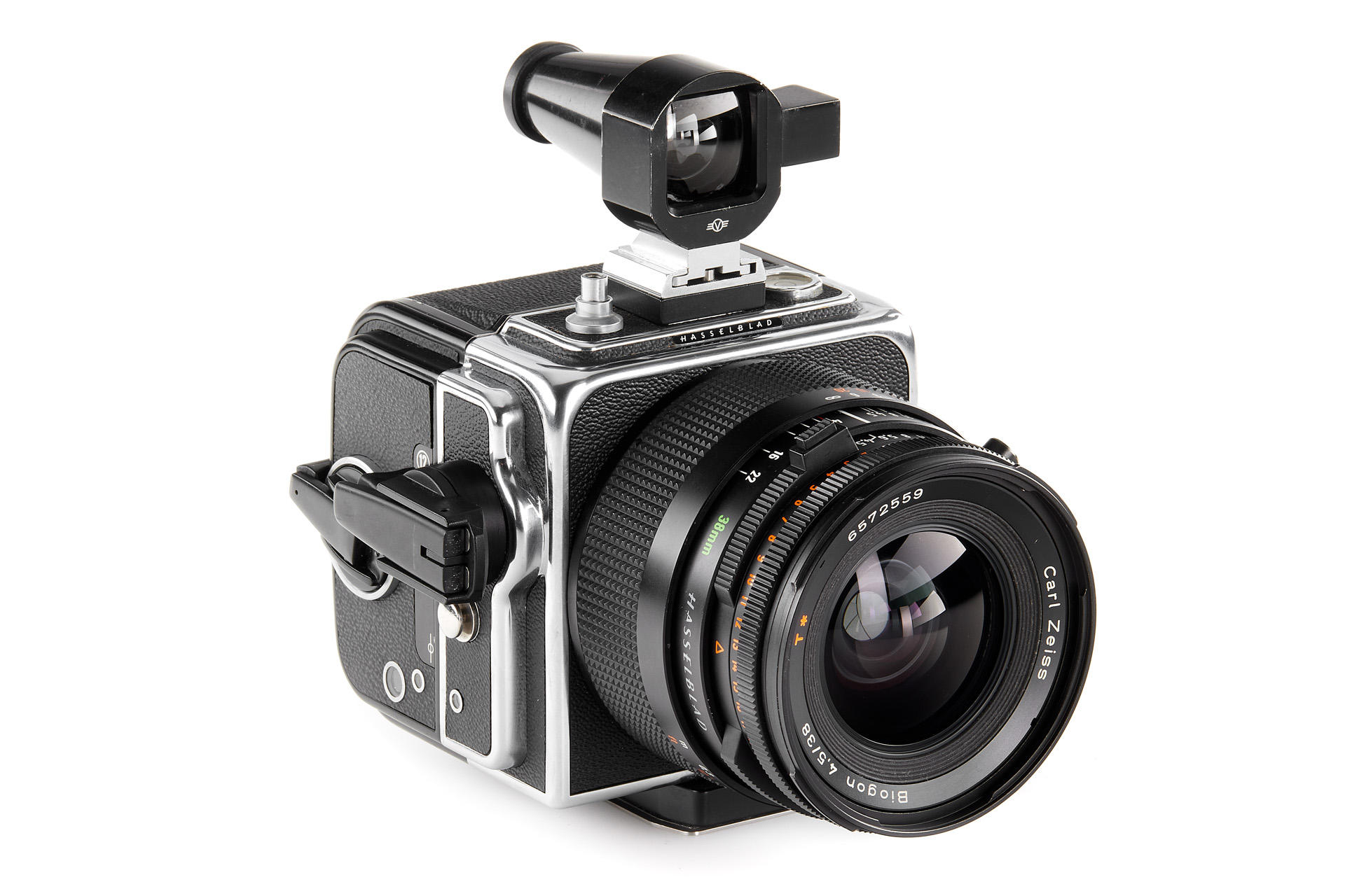 body in near-mint condition and good working order, with T* Biogon 4.5/38mm no.6572559 (good optics, front cap), matching finder, maker's box, incl. black A12 magazine no.UR3111358 (cond. B/A)
