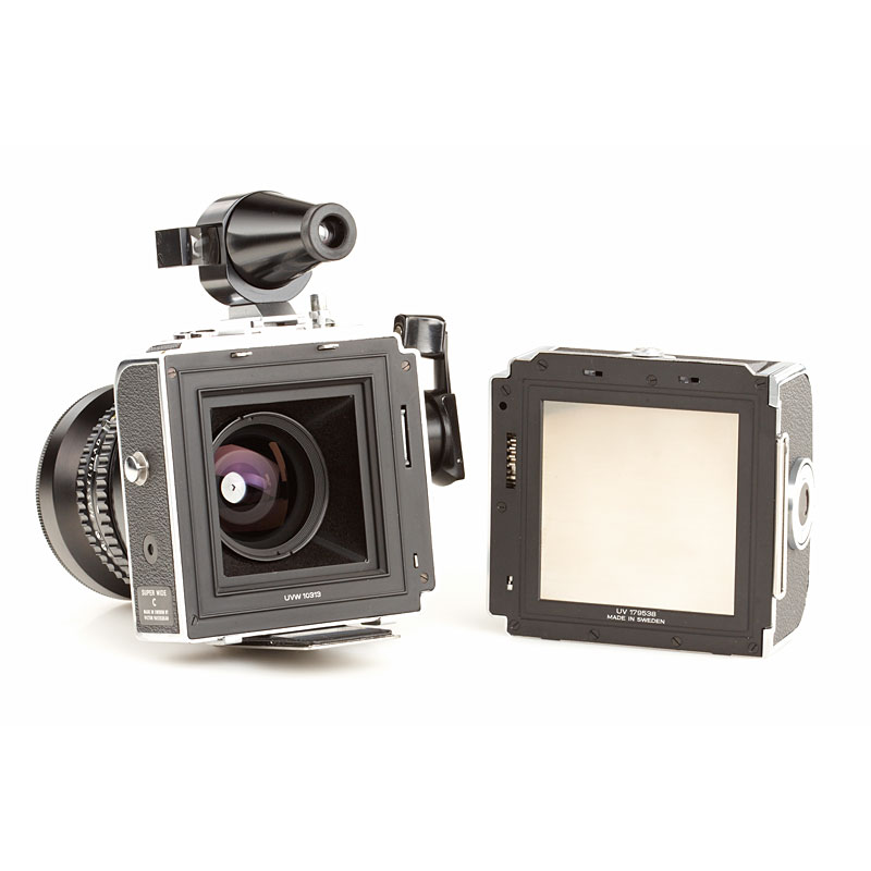 brand new and never used with black Biogon 4.5/38mm no.4959055 and matching finder, two A12 magazines no.UV179538 and no.UV184205, complete with maker's boxes including black soft case