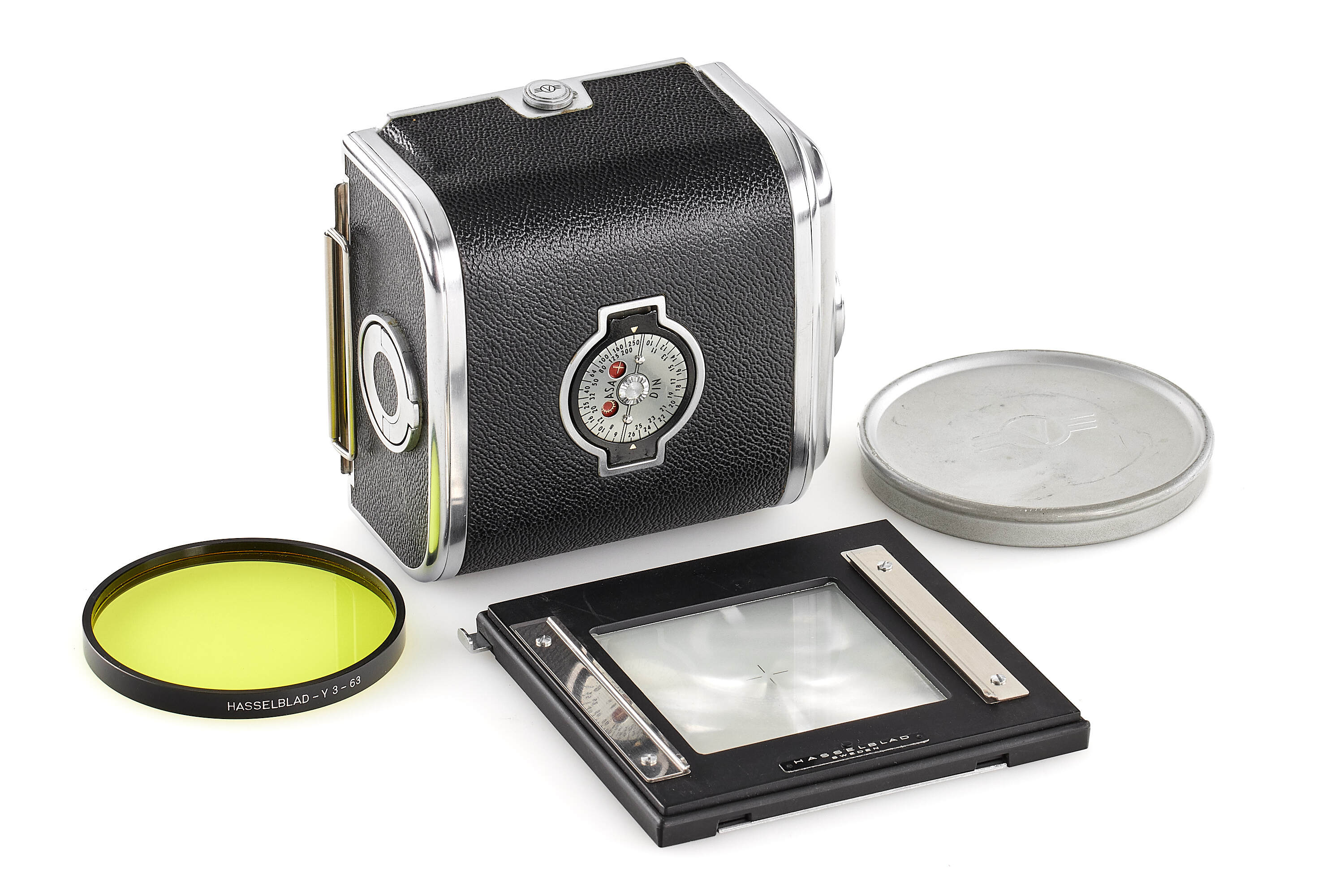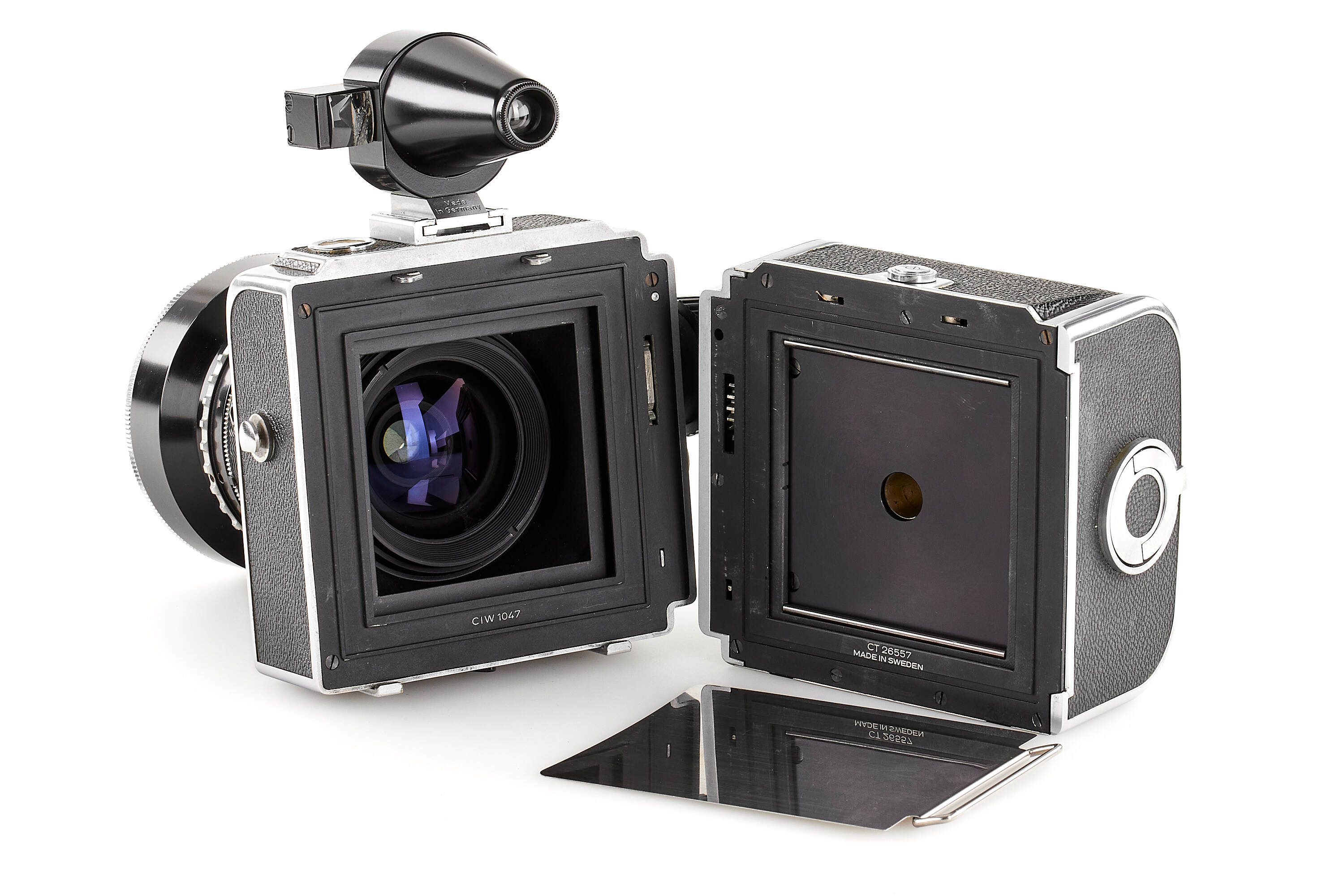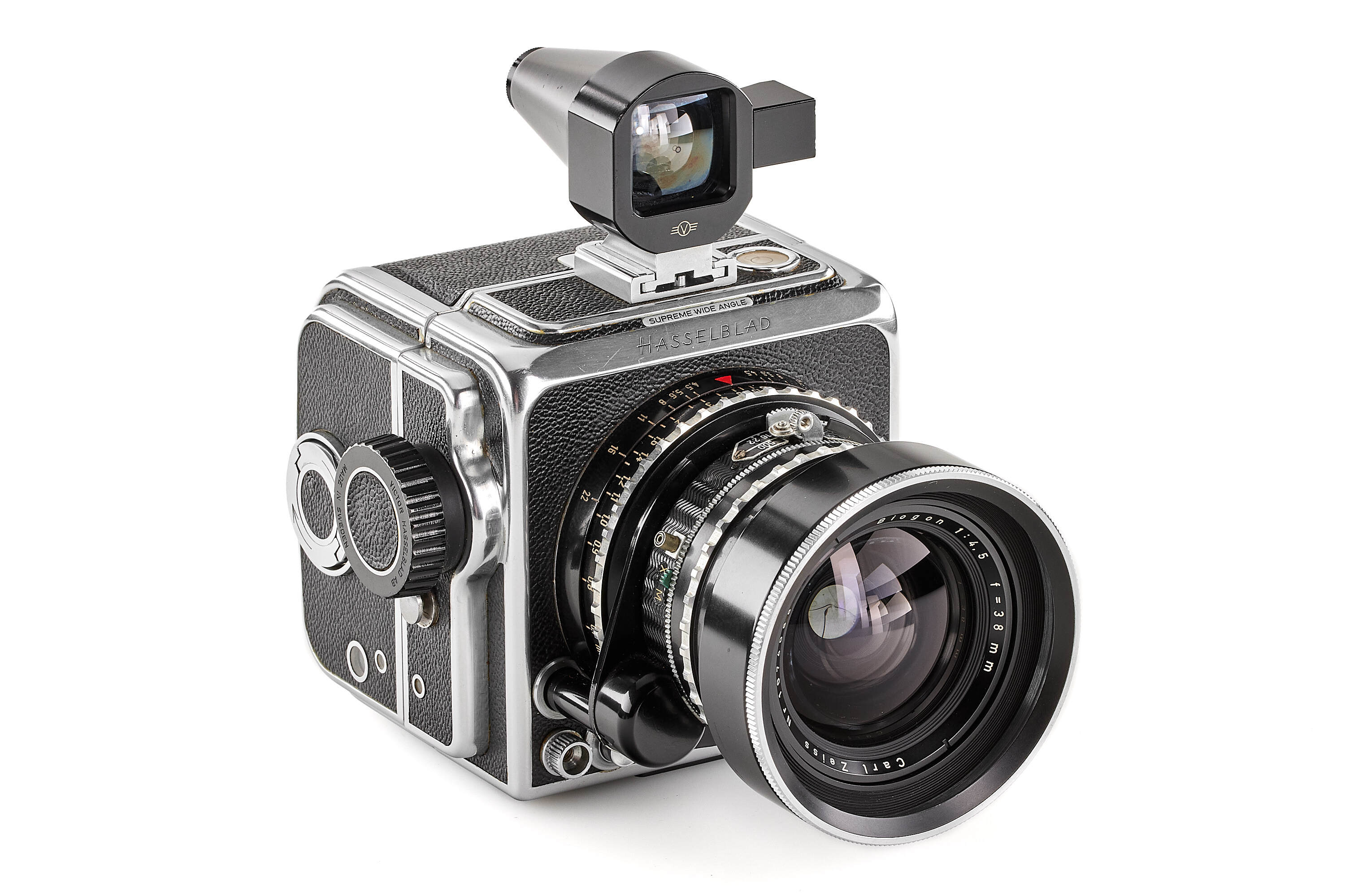 Extremely early first version Superwide, the 47th ever produced, in outstanding, mint condition, with Biogon 4.5/38mm no.1074066, clean and clear optics, with original finder, yellow filter (maker's box), original Aluminium front lens cap, ground glass adapter, 2x early magazines nos.CC23756 and CT26557, original German instructions and leather outfit leather case (with key).