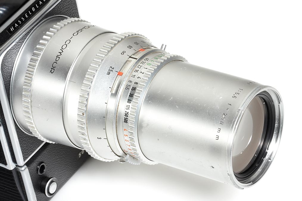 very extensive outfit incl. Super Wide C no.TCW6393 with Biogon 4.5/38mm no.3471667 (including finder), 500C no.TR88745, 500 EL no.TTE9001, Distagon 4/40mm no.4735734, Distagon 4/50mm no.4709271, Planar 2.8/80mm no.4597653, S-Planar 5.6/120mm no.4872946, Sonnar 4/150mm no.4590338, Sonnar 5.6/250mm no.4504432, 3 magazines A12 (nos.TC88679, TR123729, TU107564), 2 magazines 70 (nos.TR303706, TR304390), prism finder HC-4, magnifying hood, 2 lens hoods, extension rings 21 + 55, 70m magazine, sports finder, charger III, intervalometer I, B50 Softar II, B50 Proxar 0,5m, all in good working condition, all lenses with caps, the whole outfit in its matching and rare original outfit case