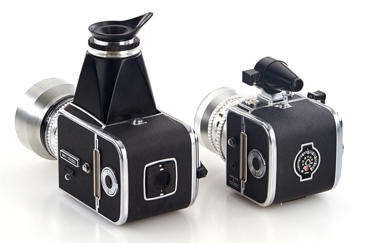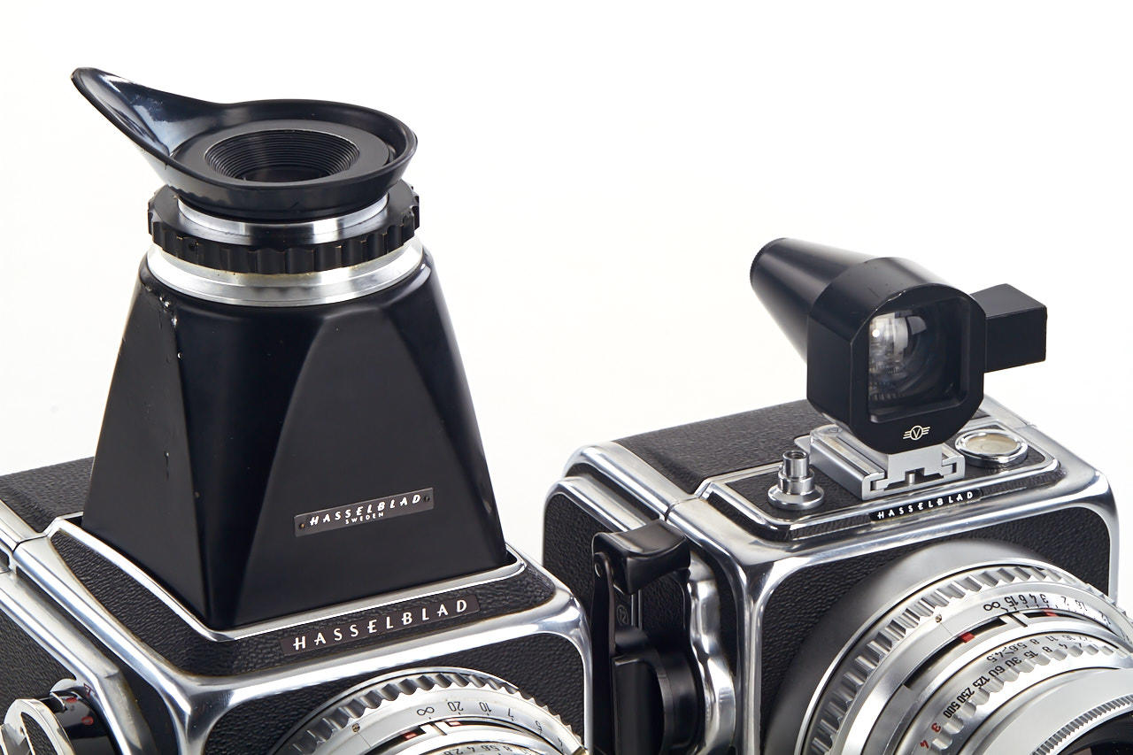 beautiful near mint outfit in black Hasselblad leather case including : (1) Super Wide C no.TVW 4254 with Biogon 4.5/38mm no.2766973, Super Wind C finder, 120 magazine no.TS 50107, (2) 500C no.TS 40138 with magnifying finder, Planar 2.8/80mm no.2574411 with metal Kodak lens hood and UV filter, spirit level, 120 magazine no.UR 3127383, (3) Sonnar 4/150mm no.2707229 (with caps), (4) Sonnar 5.6/250mm no.2727735 (with caps), (5) extension rings 55+21, Carl Zeiss B57 Softar
