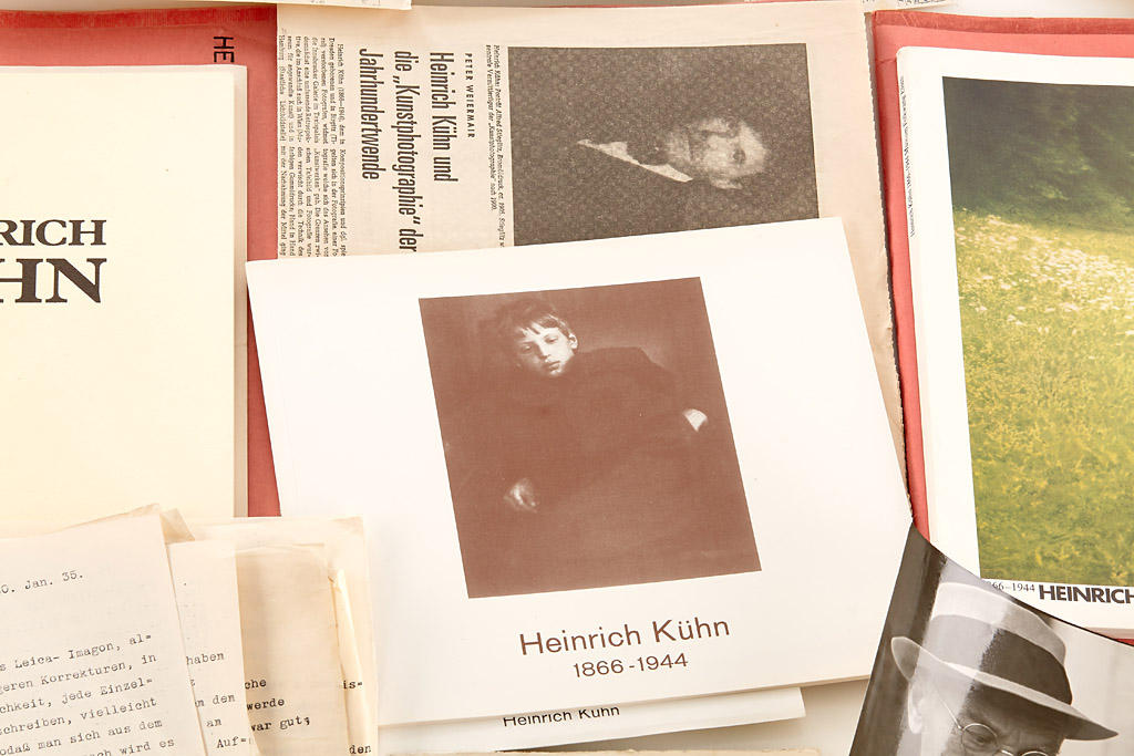 For the 70th anniversary of the death of the famous Austrian photographer Heinrich Kühn (1866-1944) we can offer beside his personal camera (see previous lot) but also a very important documentation including: (1)13 unpublished B&W prints (some vintage, approx.1942) showing Kuehn working with his Stegemann Studien Camera in Birgitz (exactly this camera is offered in the previous lot) and in his home in Birgitz. (2) the original correspondence between Heinrich Kühn and Marian Schwabik in Munich including 9 typewritten and signed letters, 2 hand written postcards - all between 1935-1937 with very interesting content regarding Kuehn's work. (3) 3 mint exhibition catalogues: Heinrich Kuehn Photographien, Innsbruck 1976. Heinrich Kuehn 110 Bilder, Museum Folkwang, Essen 1978. Heinrich Kuehn 100 Photographien, Muenchen 1981. (4) various related material including original reports from newspapers.