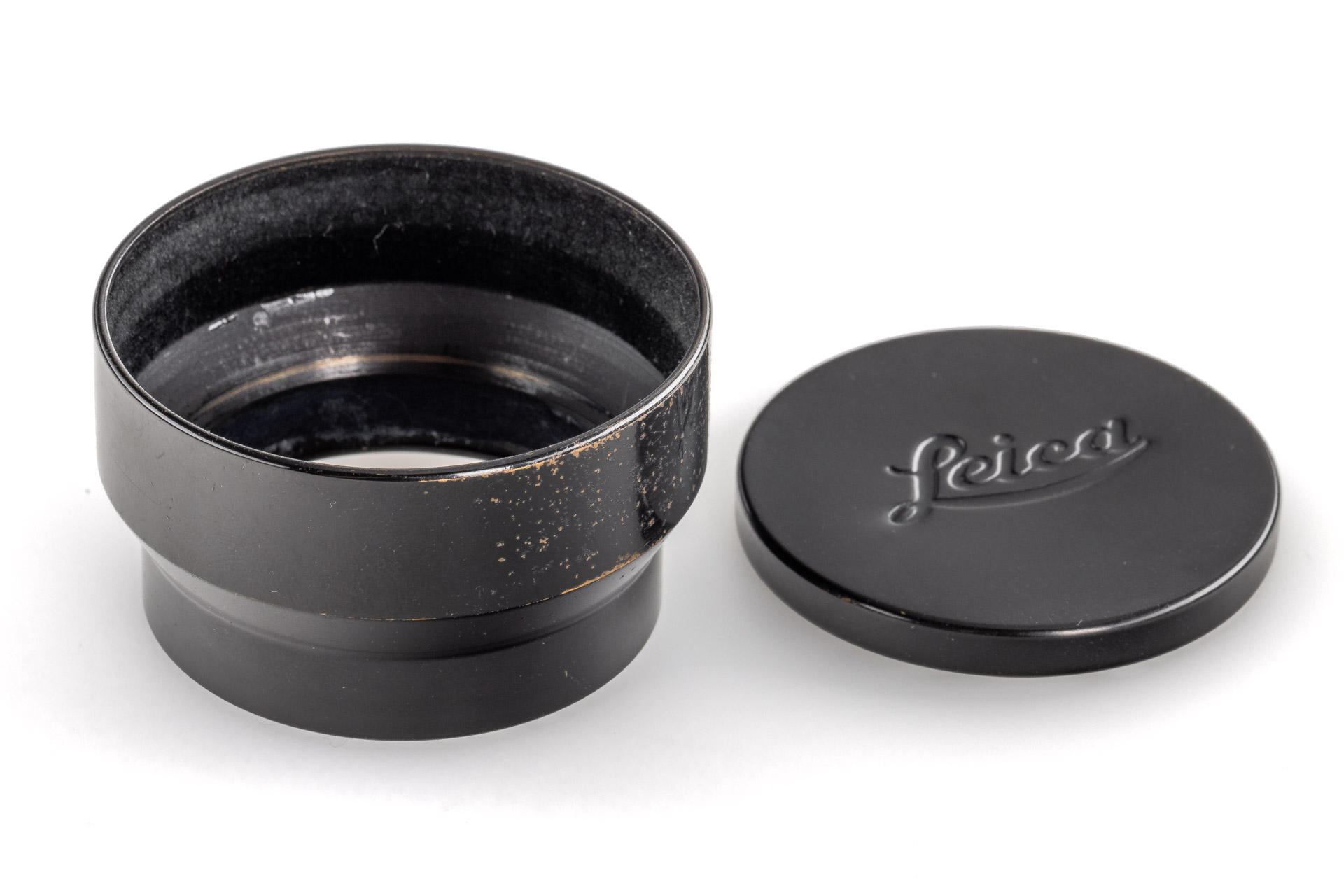 beautiful black/chrome version with parallel, non-rotating mount (designed to use with Agfacolor filters), in near mint condition, rangefinder coupled in meter scale, showing some flakes and cleaning marks, with hood and both front and rear caps, first delivered to Brussels on 18.03.1935