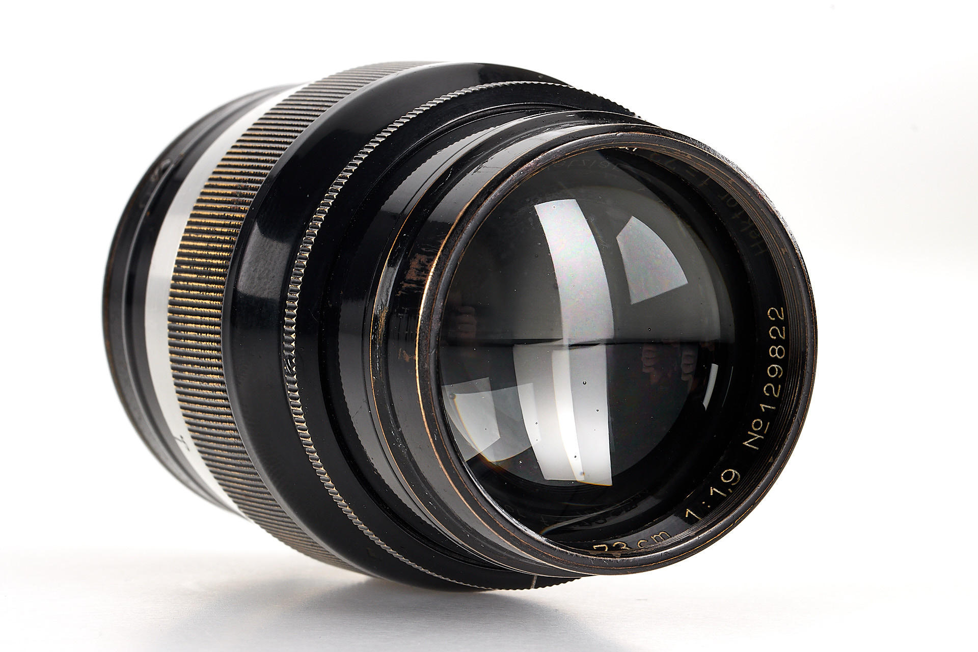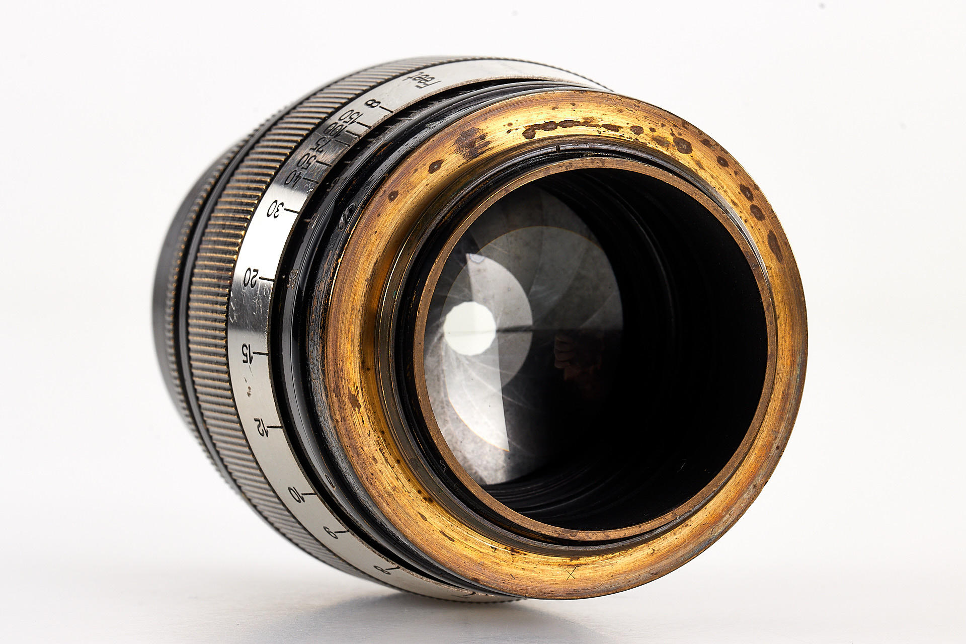 early, fast portrait lens in rotating mount, black/nickel finish, with good optics