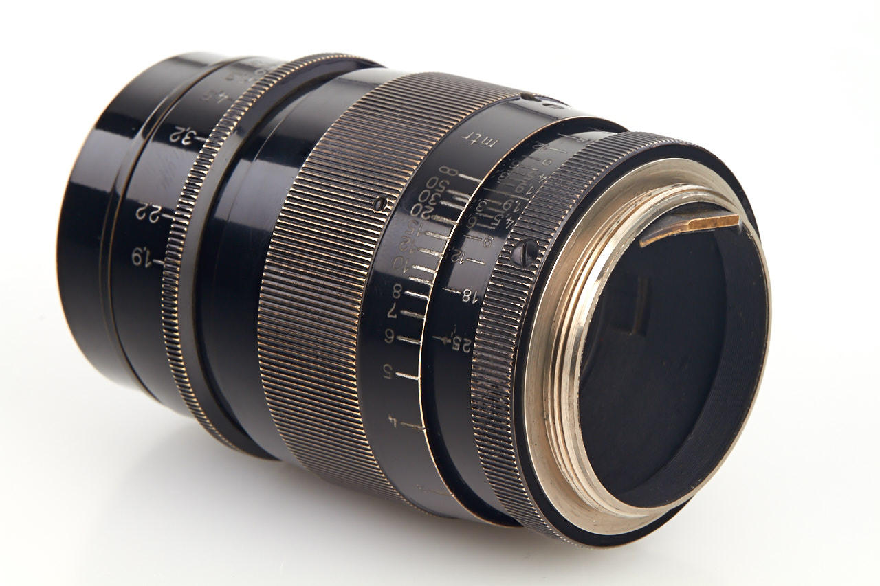 rare all-black version in parallel mount, very fine condition with clean optics (only few cleaning marks on front element), original hood, front and rear cap and red maker's box