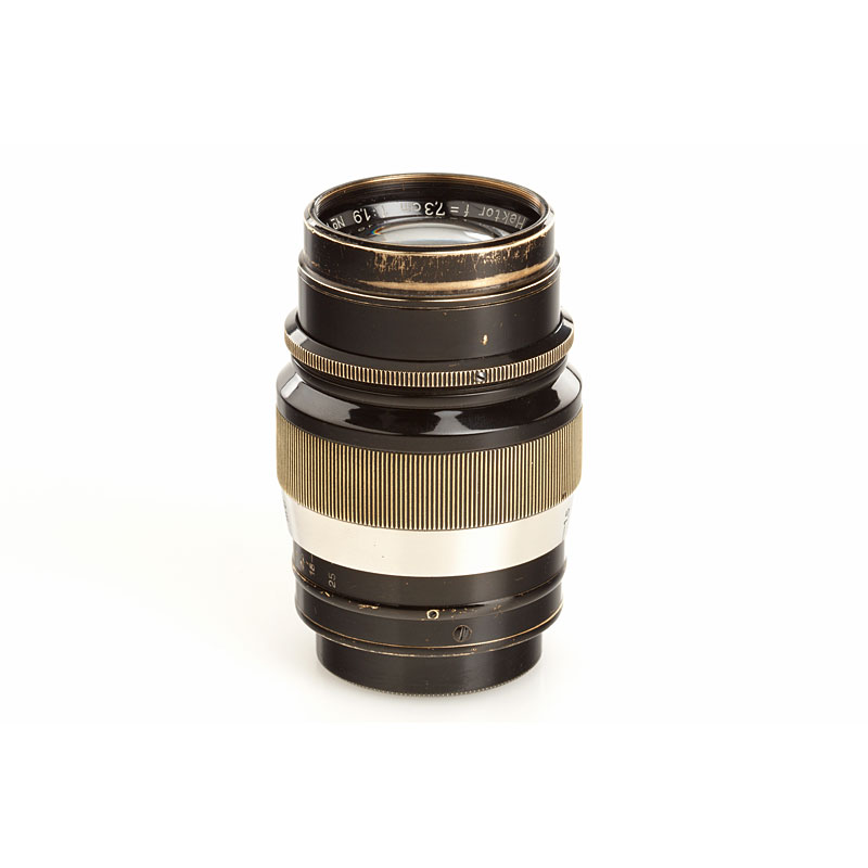 early HEKON with cleaning marks on front element, original hood (repainted) and both caps