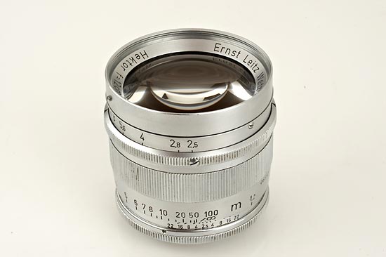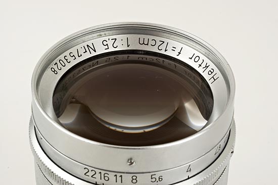 prototype lens of the later 12.5cm Hektor, extremely rare with original hood engraved: “Hektor 12cm, Ernst Leitz Wetzlar Germany” (condition B/C), see: Lager II page 93, Wilhelm Albert "Geburtstage der Leitz-Foto-Konstruktionen ab 1927", page 162, "10 Jahre Leica Historica Beiträge zur Geschichte der Leica", pages 100-101, with a probably unique prototype sports-finder 12cm (condition B)