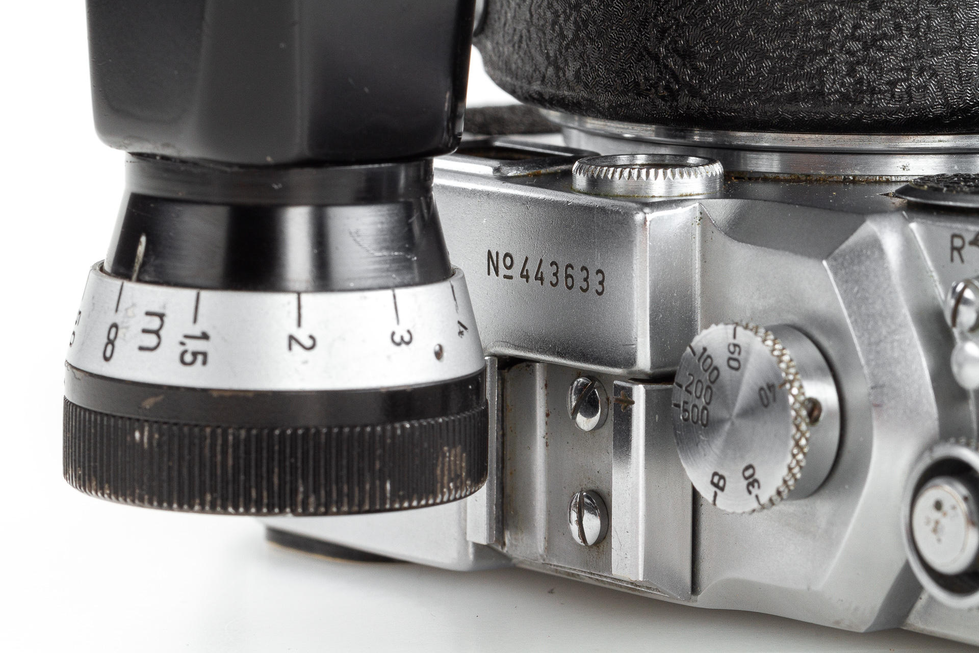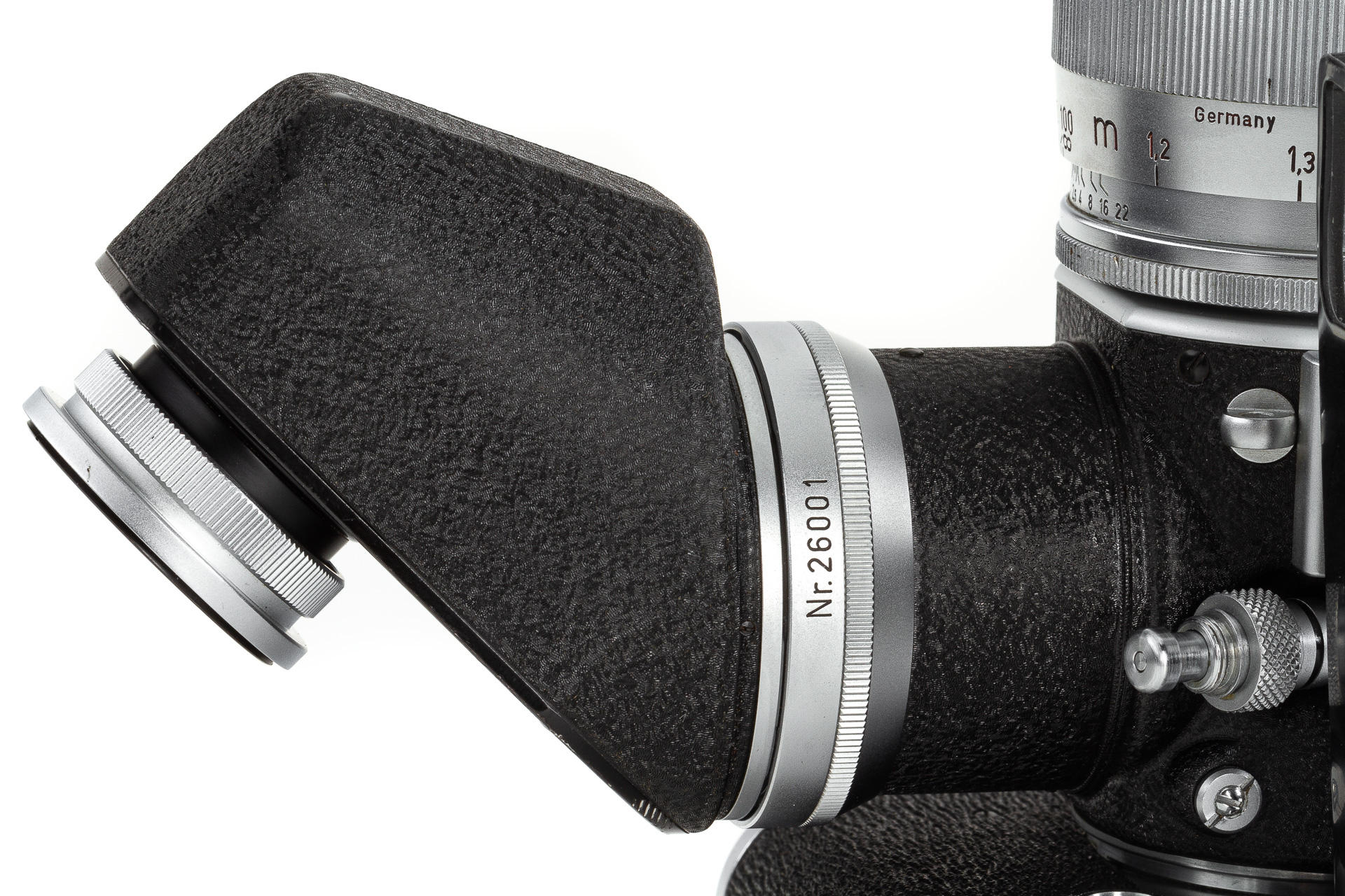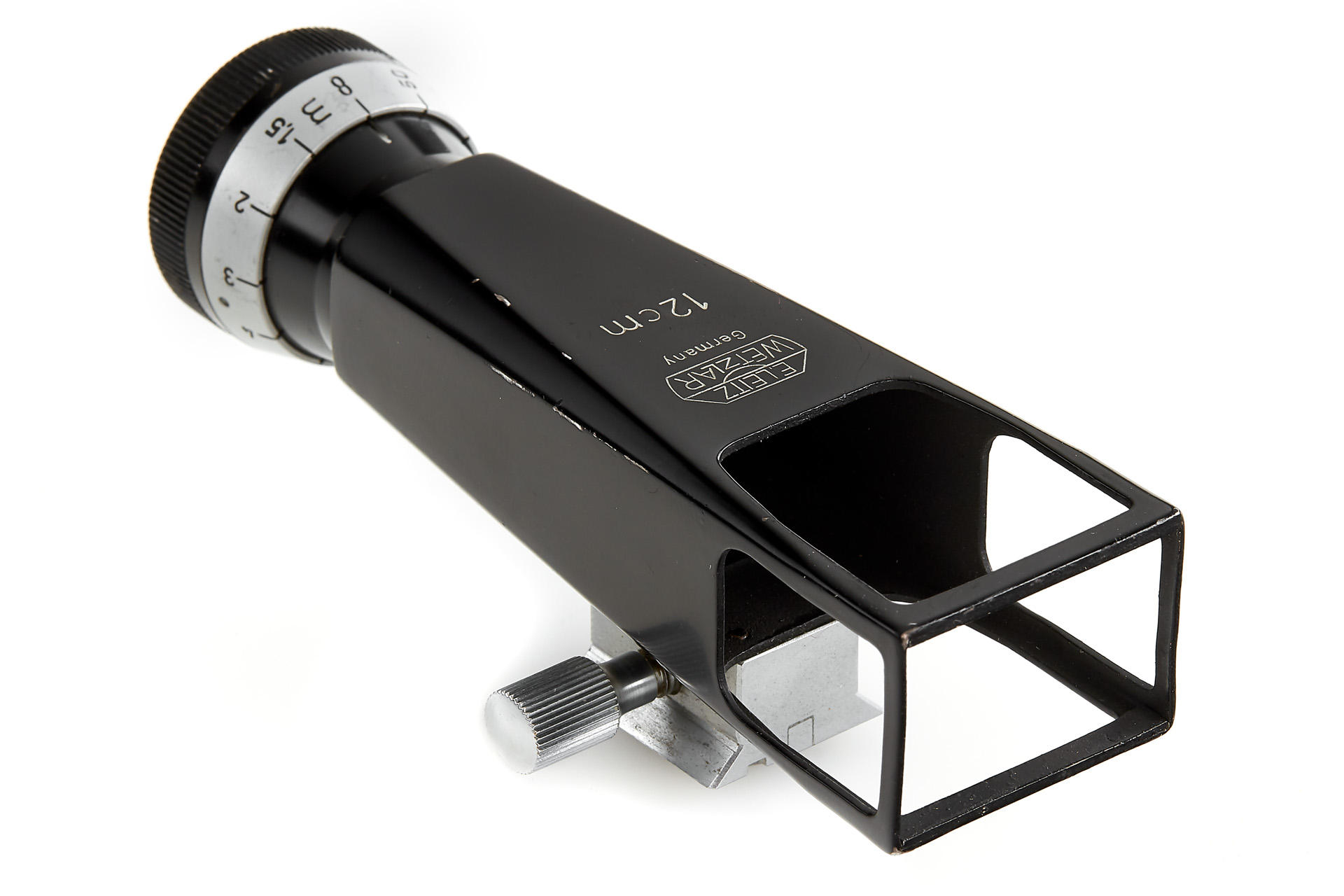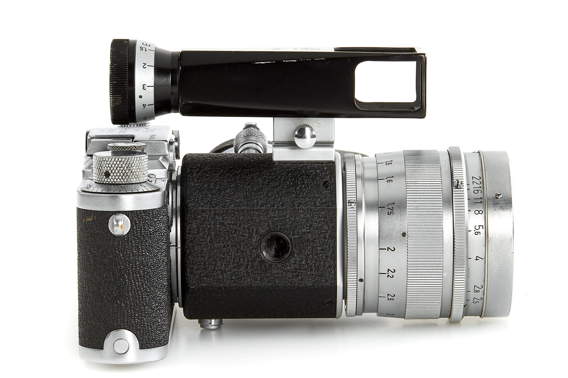 an extremely rare high-speed telephoto lens, from a small batch of only 14 lenses issued for testing purposes in 1949 (all later production lenses were 12.5cm), designed to work with Visoflex I, also usable on Visoflex II with the OUBIO extension tube, here in a set with matching near-mint hood engraved with 'Hektor 12cm, Ernst Leitz Wetzlar, Germany' and 12cm prototype frame finder. Also included in this lot is a Visoflex I with 45° finder and a Leica IIc no.433633. The 12cm Hektor is one of the rarest Leica lenses, and this is one of the best examples known to exist.