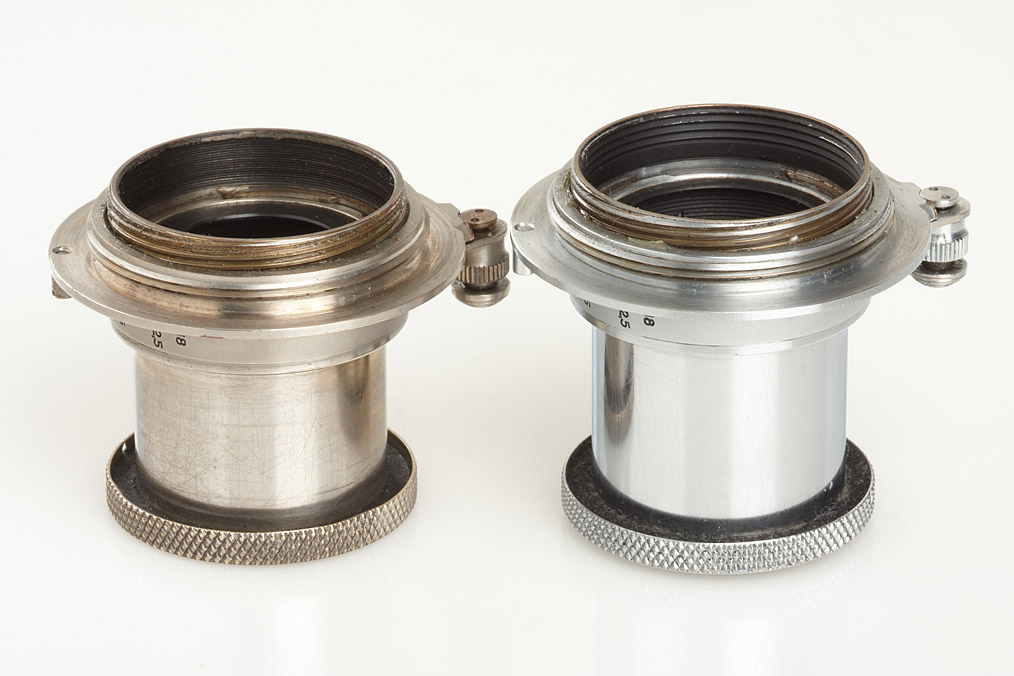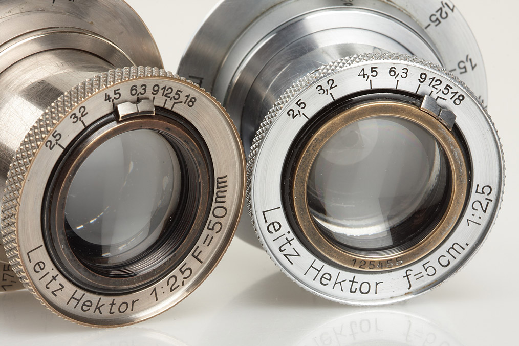 (1) rare chrome Hektor 2.5/5cm no.125455 (cond. B+, caps), (2) nickel Hektor 2.5/50mm no.178469 (cond. B) (2)