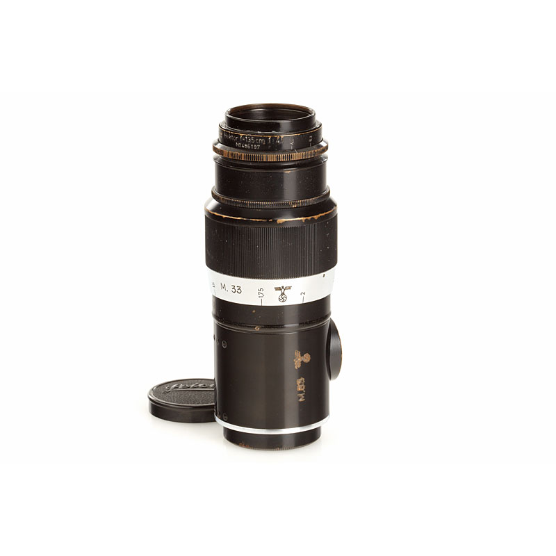 original military Hektor for the German Navy, engraved 'MF.33', Reichsadler + Swastika on lens barrel and focusing ring (caps, bakelite keeper), delivered to Berlin (Bln) on September 6th, 1939 (delivery number 31604) - exactly this lens is illustrated in Lager Vol. I p.94