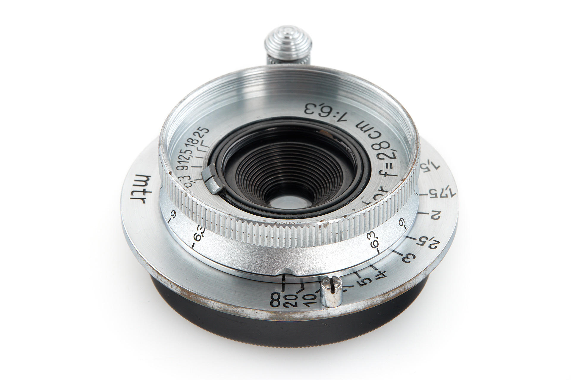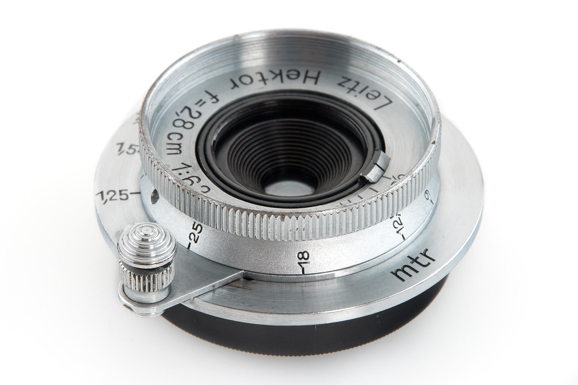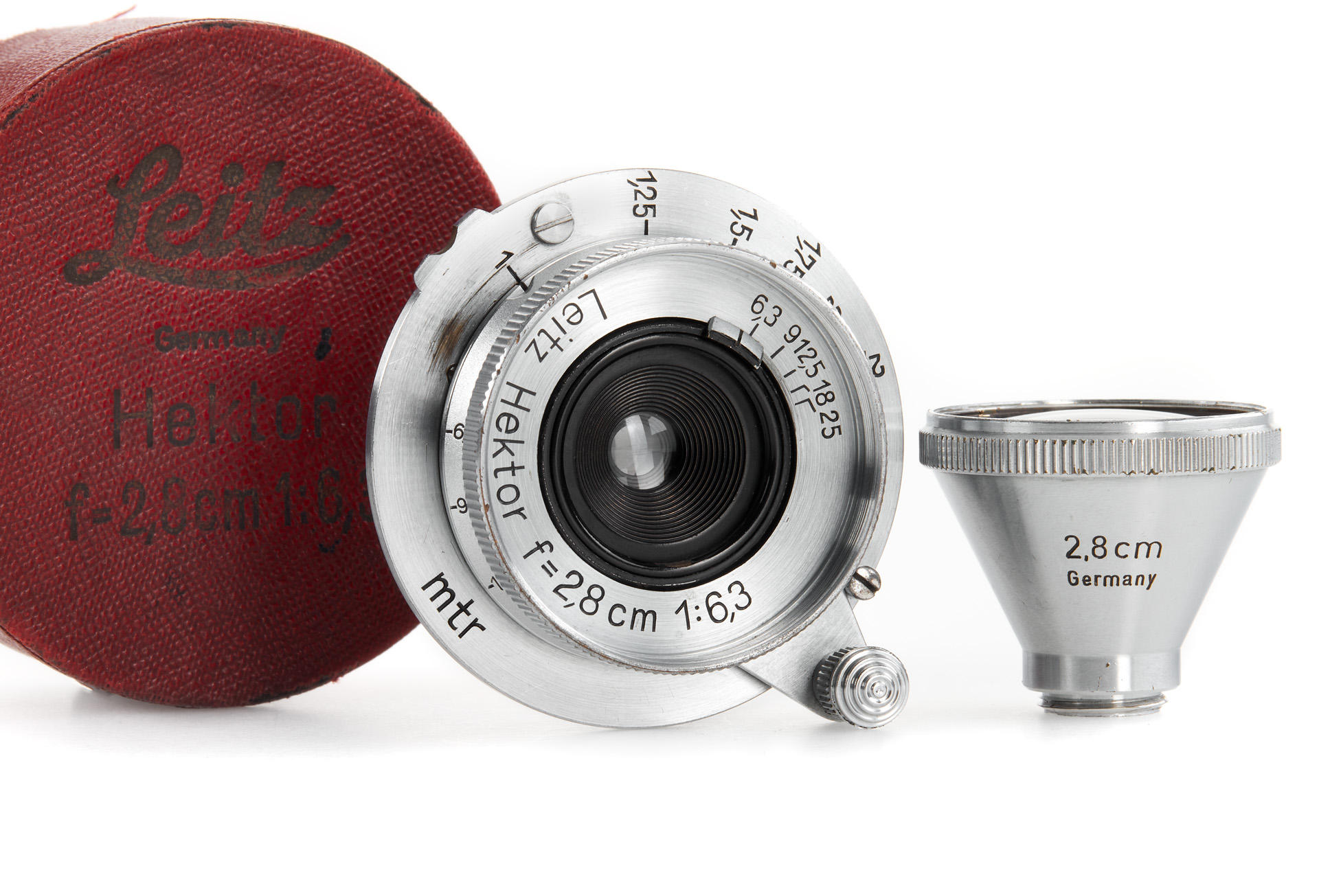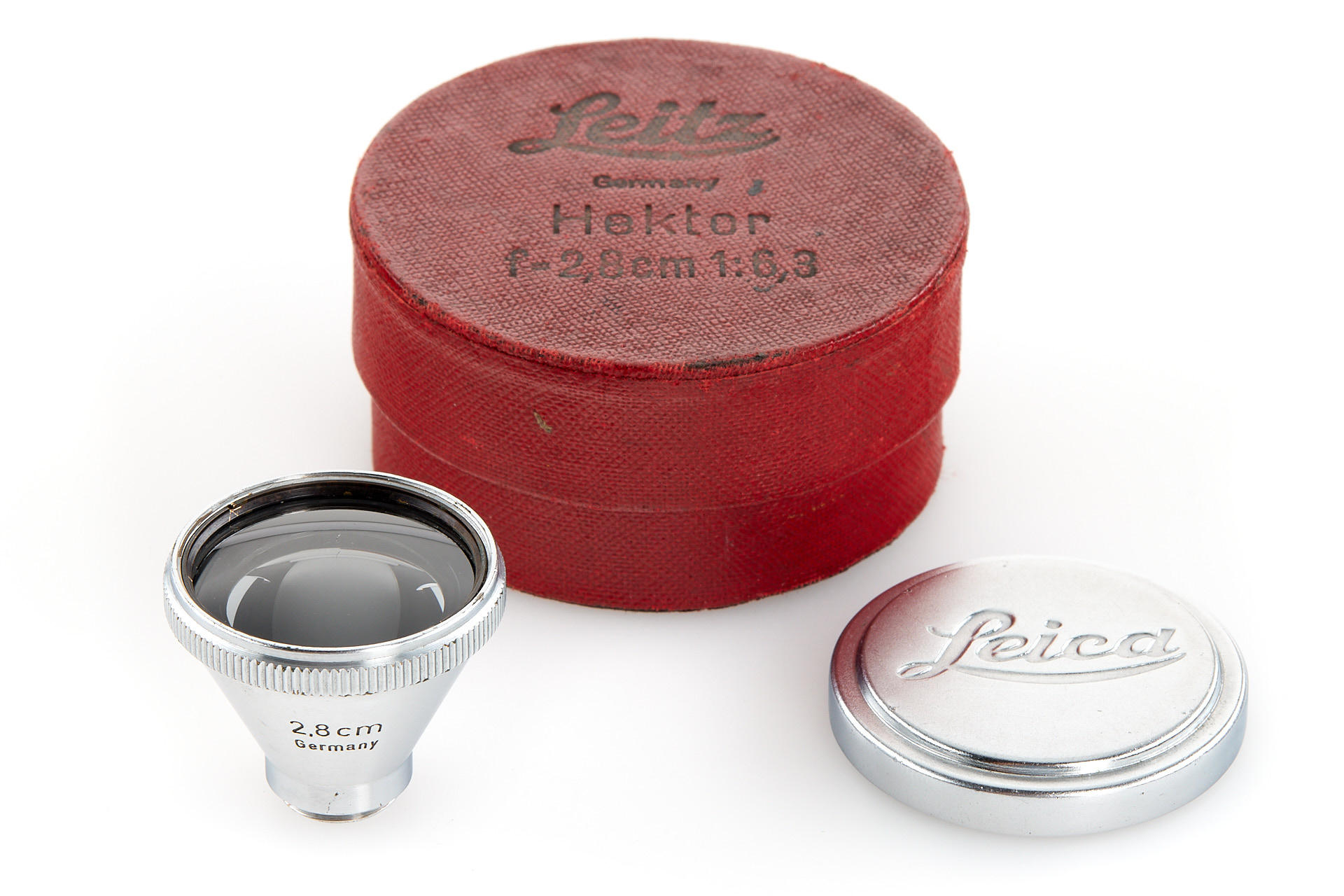 An early lens in very good condition, optics slightly hazy and with a few cleaning marks, incl. both caps, red maker's box and TUVOO adapter