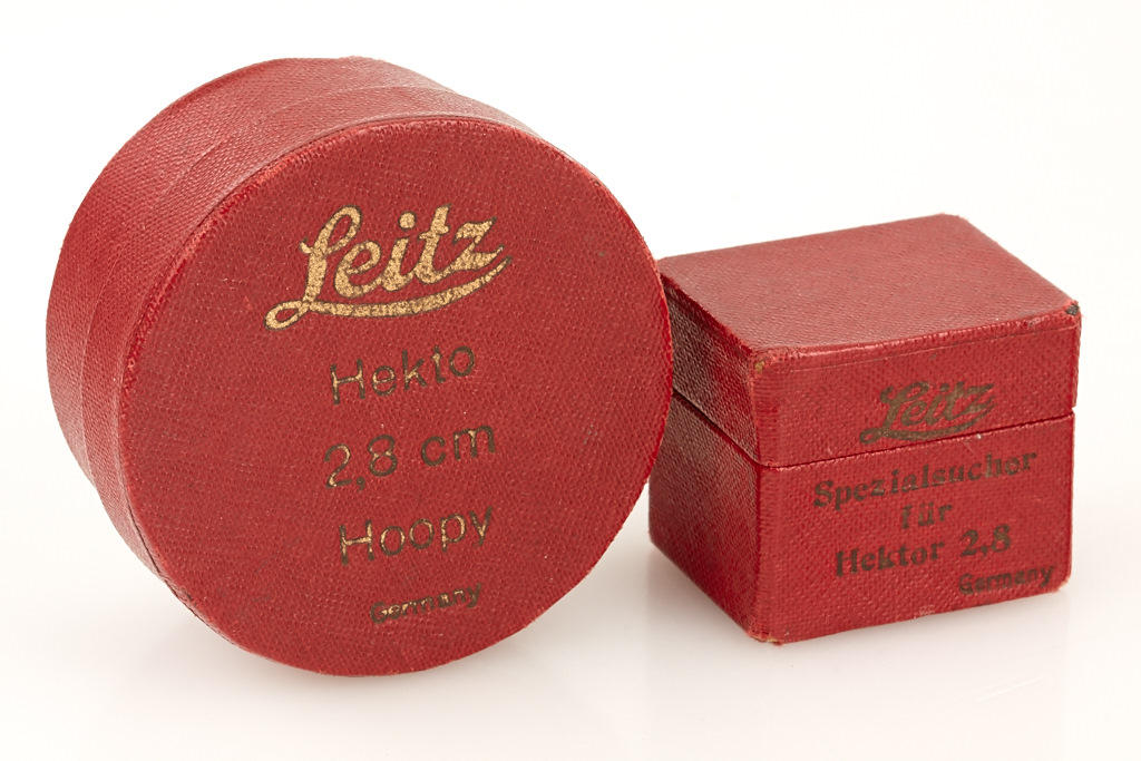 in near mint condition with good lenses, red 'Hekto' maker's box, black/nickel SUOOQ 2.8cm finder in red maker's box
