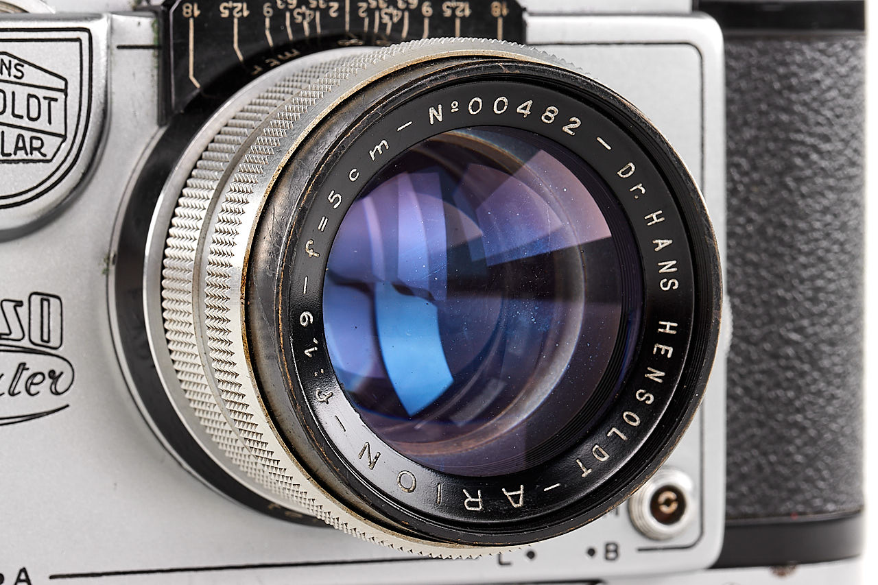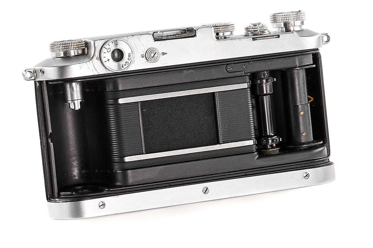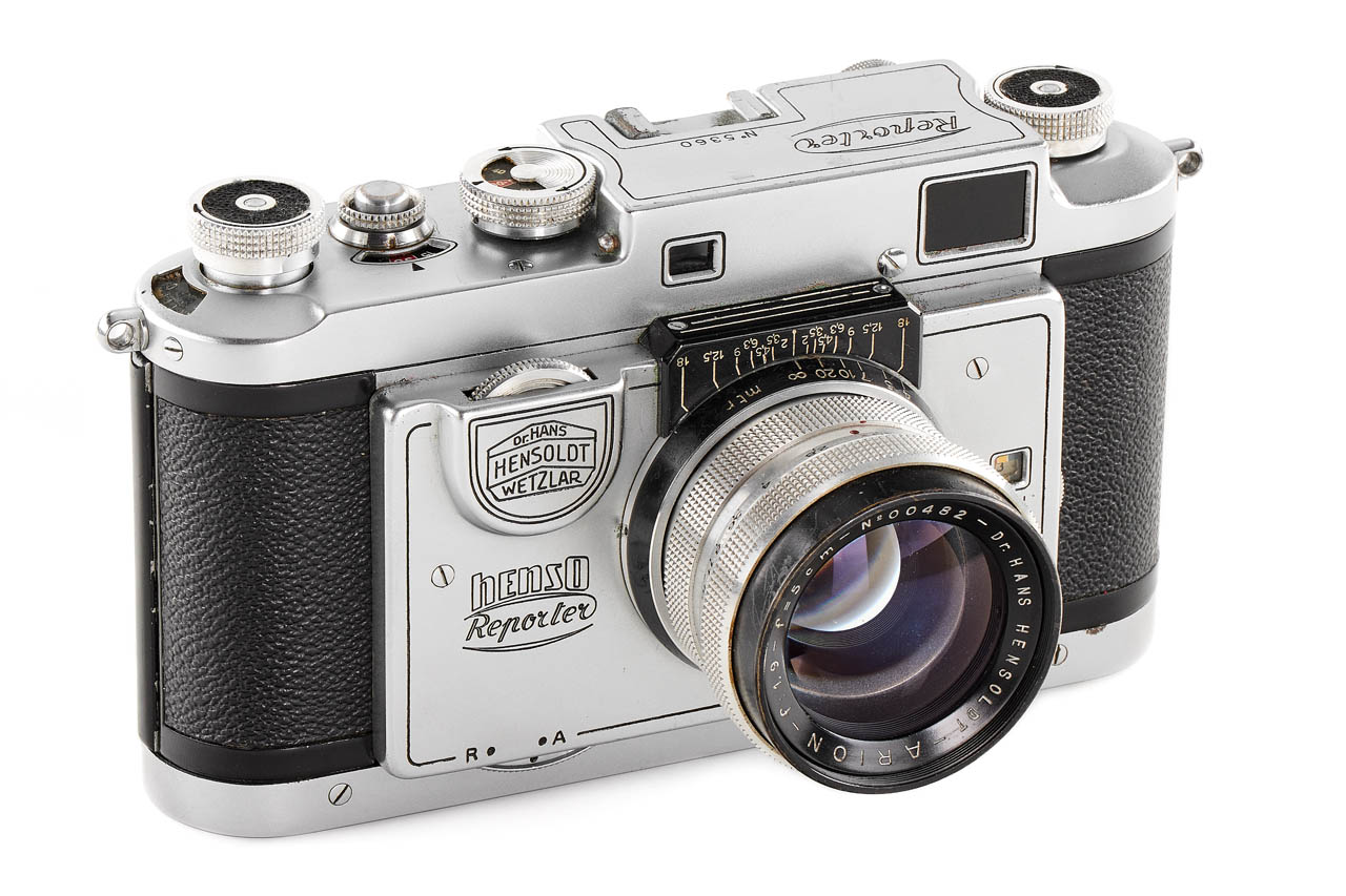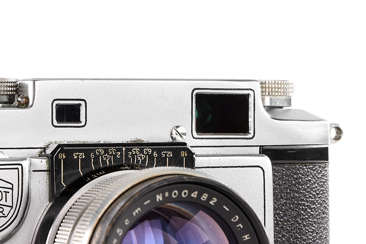 Rare Leica copy with built-in rapid wind, produced by ISO Milano for Hensoldt, in very good condition and working order, with fast ARION 1.9/5cm no.00482 still with very good optics.