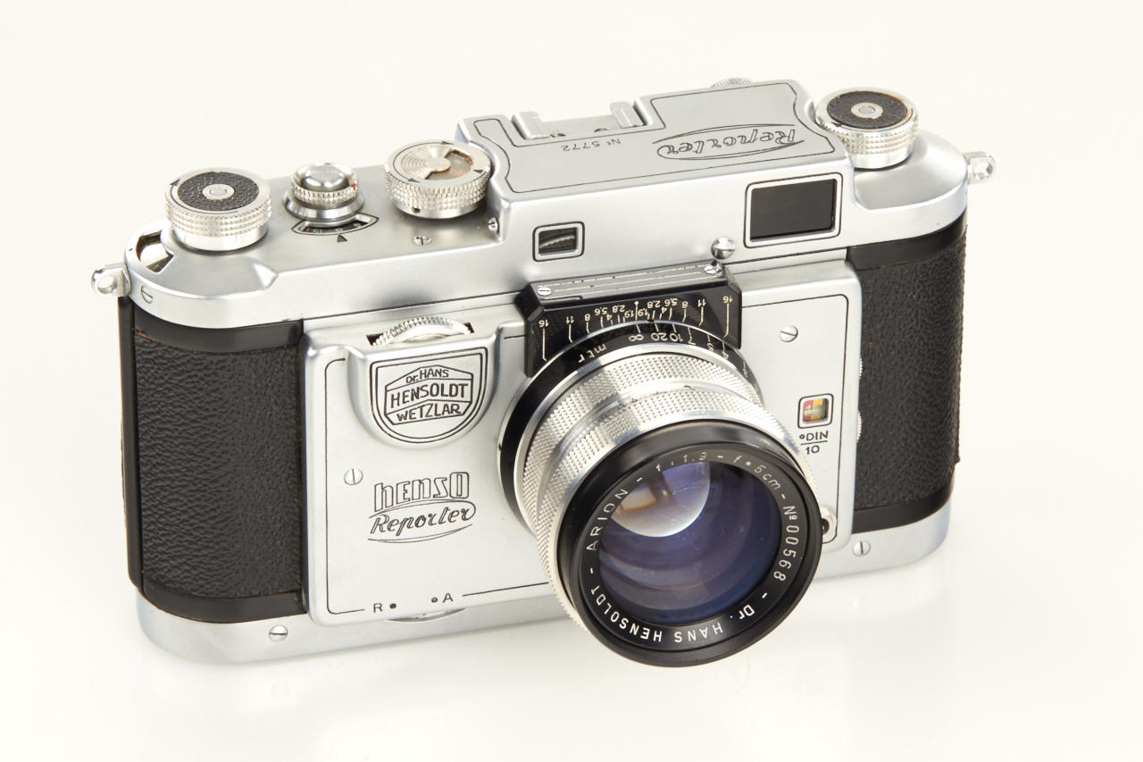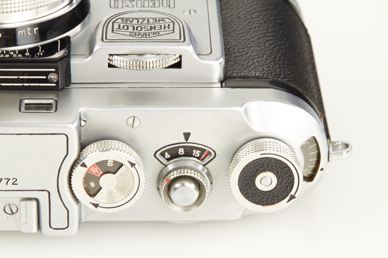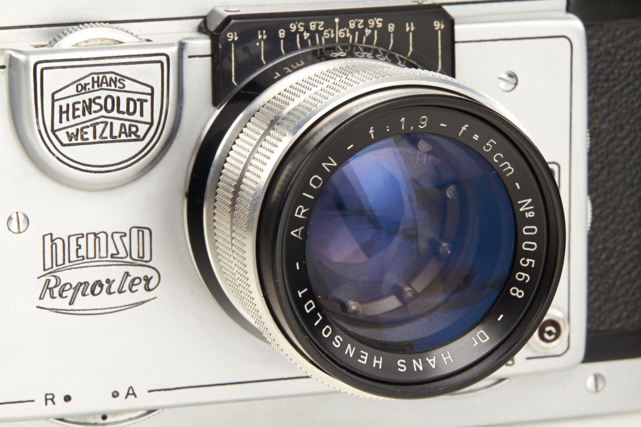 rare Leica copy with rapid wind, produced by ISO Milano for Hensoldt, with fast ARION 1.9/5cm no.00568, cap, with rare maker's box, guarantee cards for camera and lens