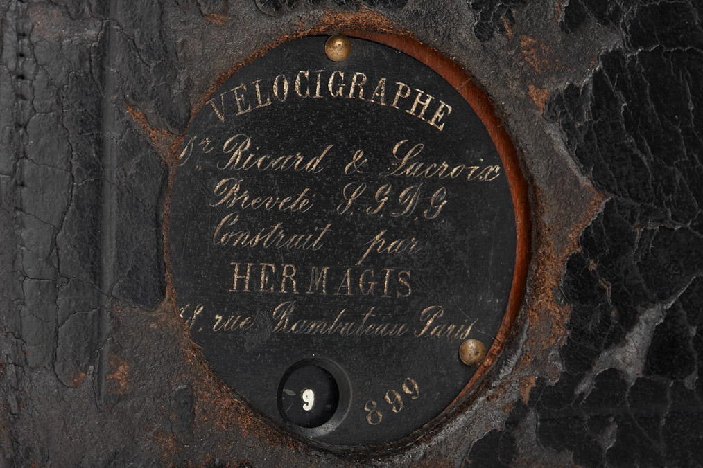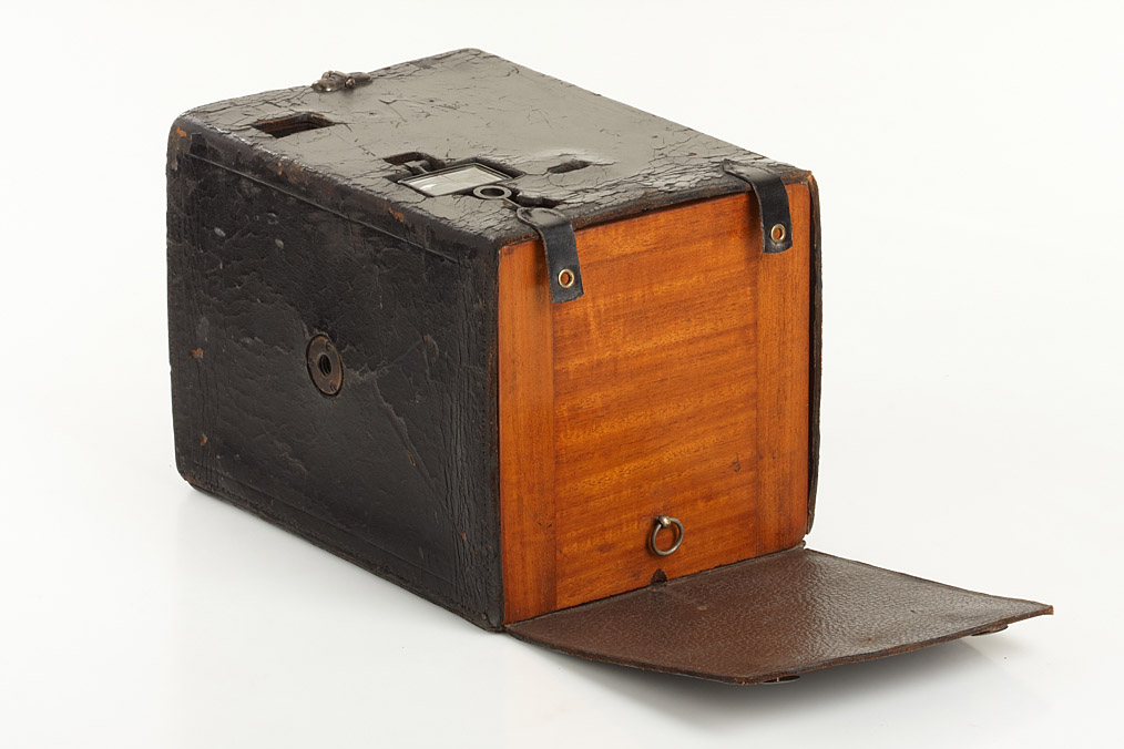 detective-style drop plate magazine camera for 9x12cm plates, polished wood body, nickel Hermagis Aplanastigmat No.8 140mm lens no.30826, in good condition with leather case
