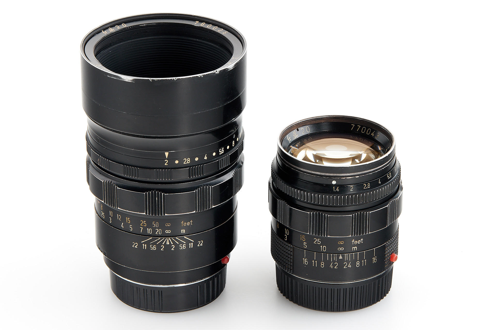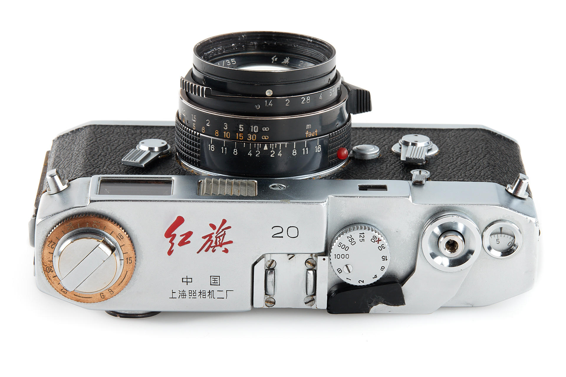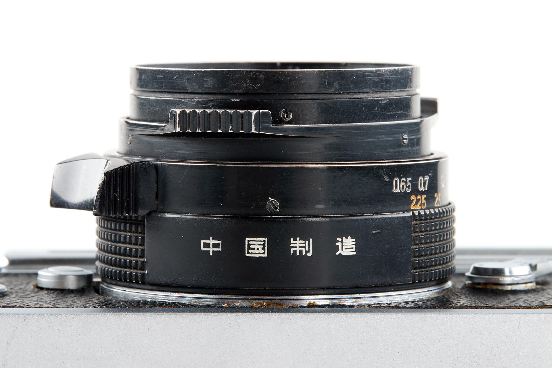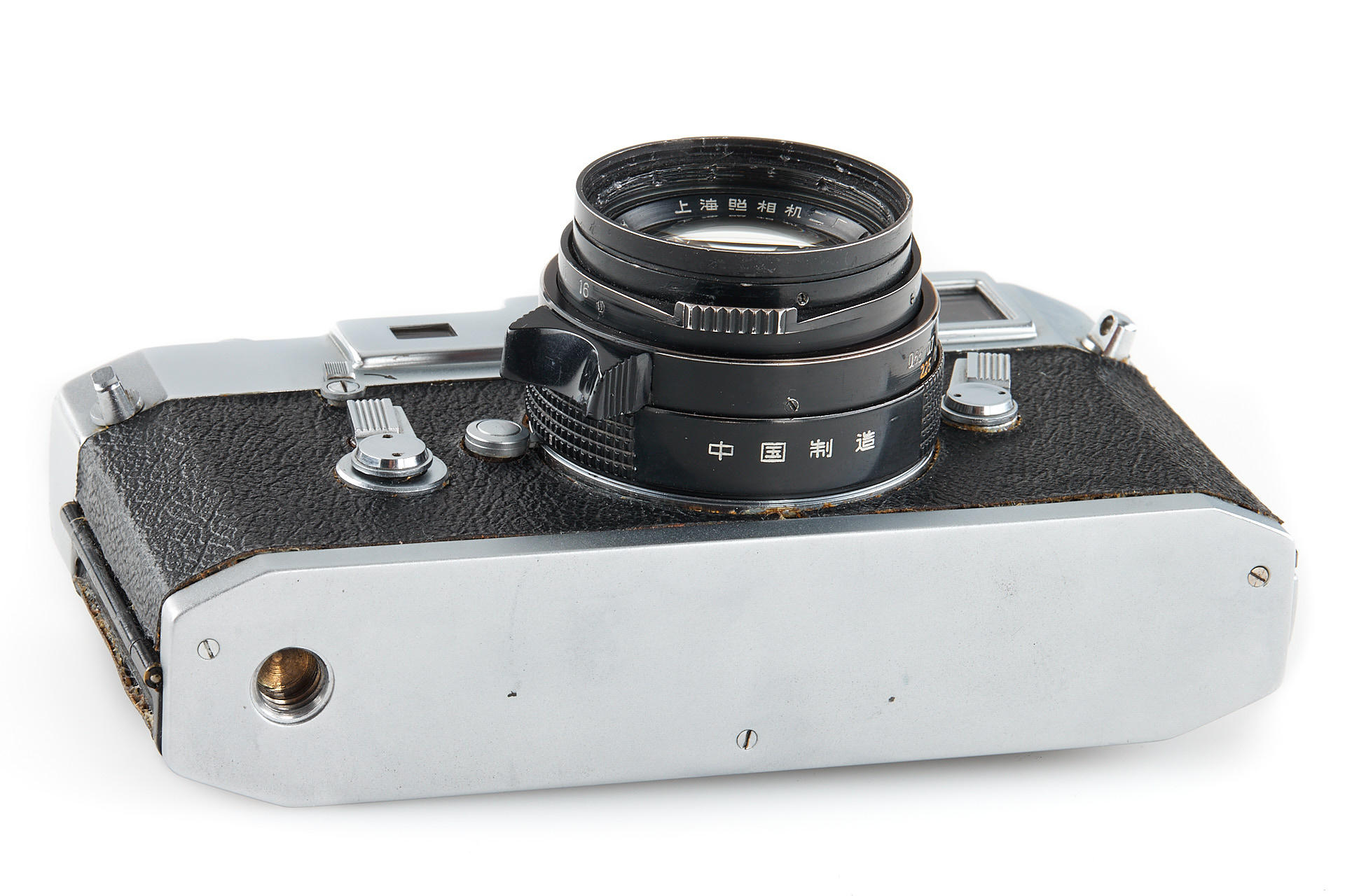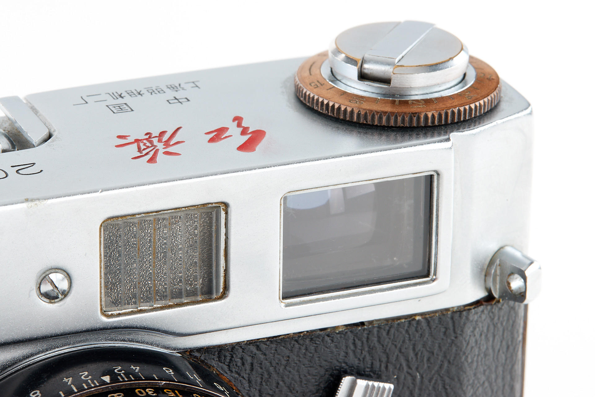 Very rare Chinese Leica M4/M5 copy, less than 200 cameras have been produced by direct order of the government as a demonstration of the capabilities of the Chinese industry, none of these has been sold to the public. This example is in good original condition and in working order, it comes with a complete set of matching lenses: 1.4/35mm no.77218 (Summilux 35mm copy, very good optics, front cap), 1.4/50mm no.770043 (Summilux copy, clean optics - only a few hairline marks, original hood and front cap), 2/90mm no.760028 (Summicron copy, clean lenses - only a few hairline marks, front cap), a rare opportunity for every camera collector!