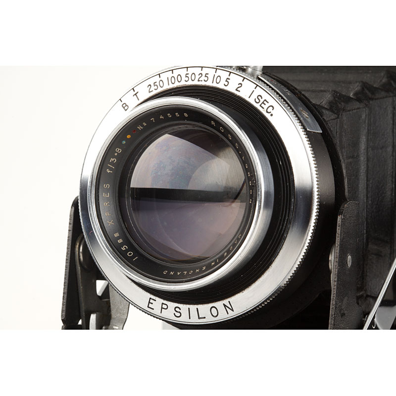 6x9cm rangefinder camera in good working order with Ross Xpres 3.8/105mm no.74558 in perfect working Epsilon shutter, everready case