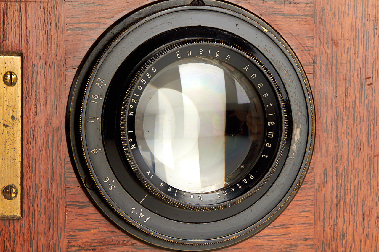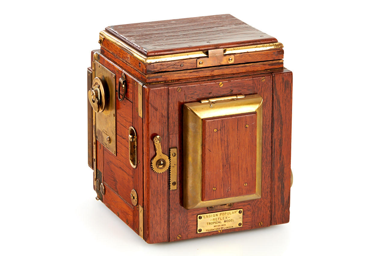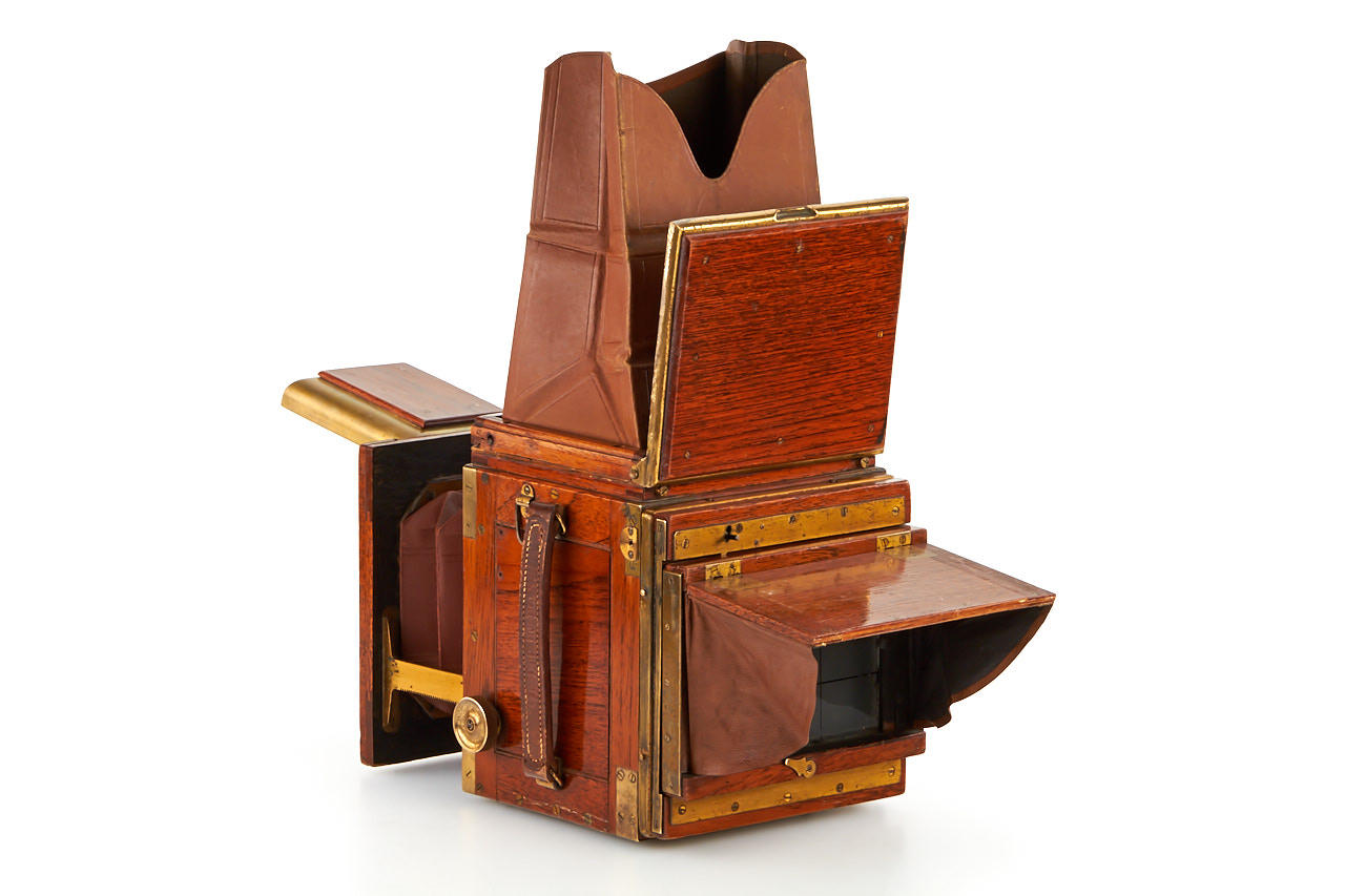 very rare tropical camera for 3 1/4 x 4 1/4" vertical or horizontal exposures on plates, similar to Marion Soho, but much more uncommon, in very good original condition, with Ensign Anastigmat f:4.5 lens no.210585