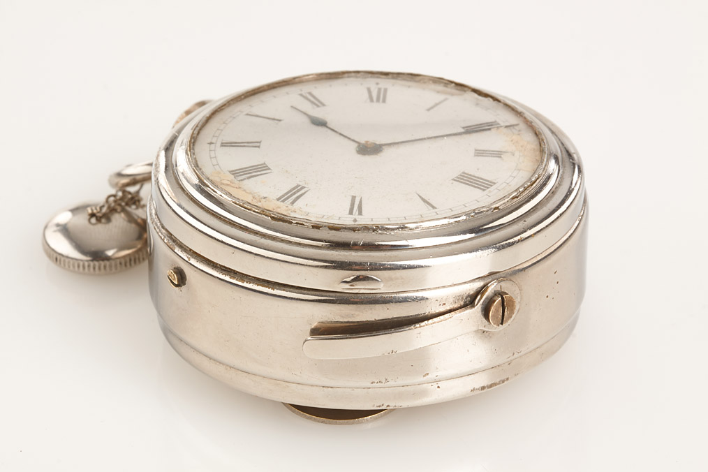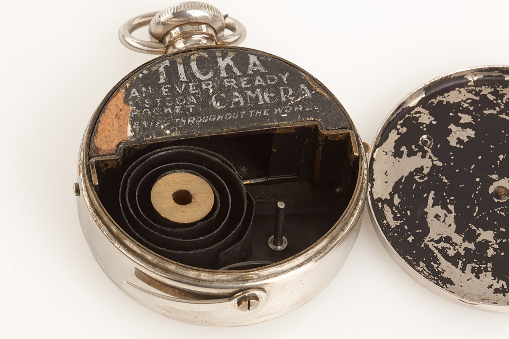 very rare version of the pocket-watch detective camera (hands on the face show the viewing angle of the lens), in original condition