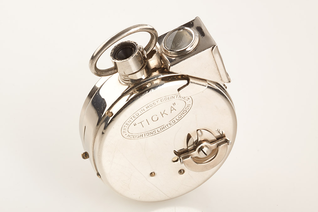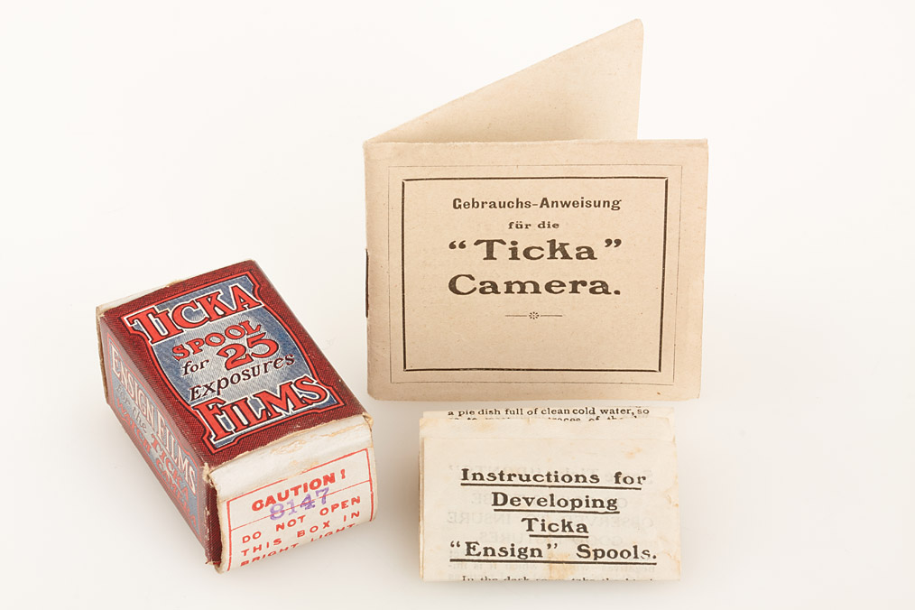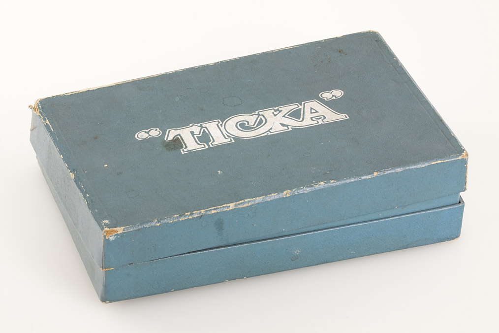 in near mint condition with cap, reflex finder, unused Ticka film with maker's box, German instructions and blue maker's box