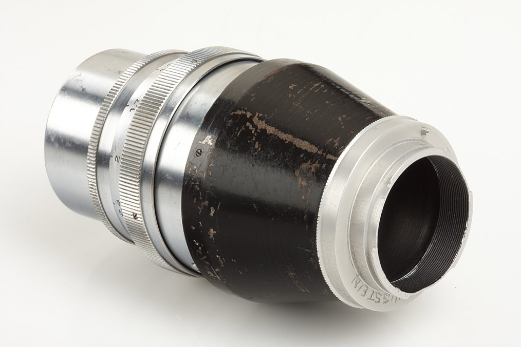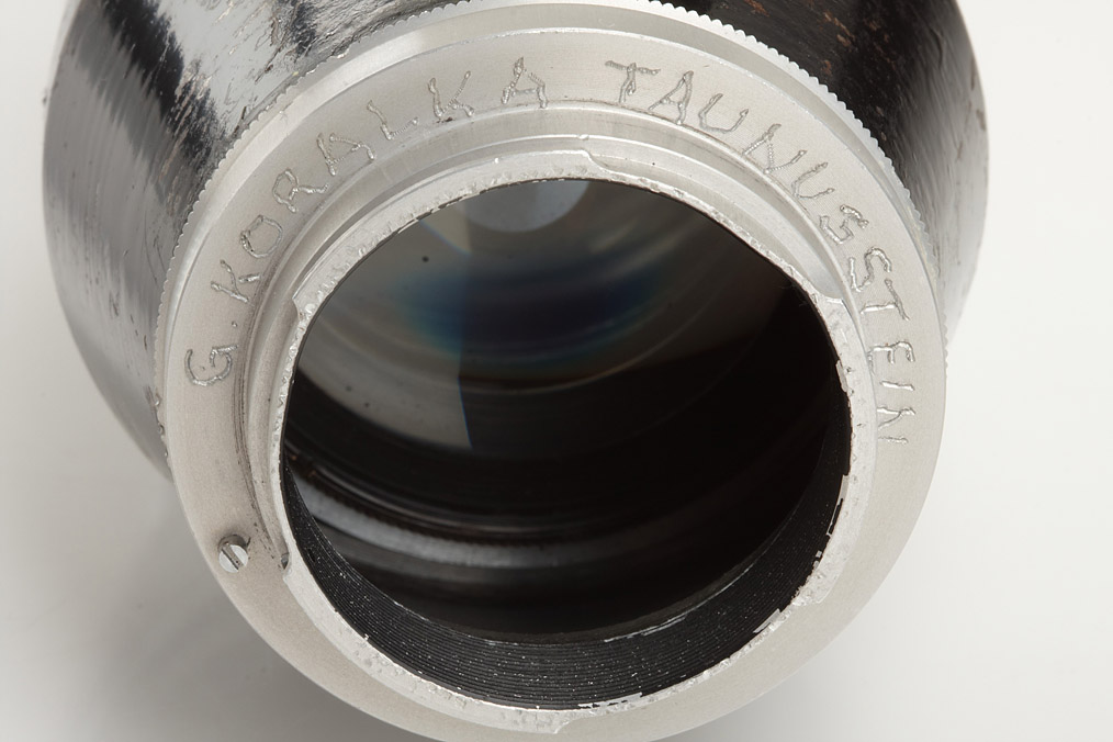 very rare, medium format Makro Plasmat in professionally adapted Kine-Exakta mount, hood