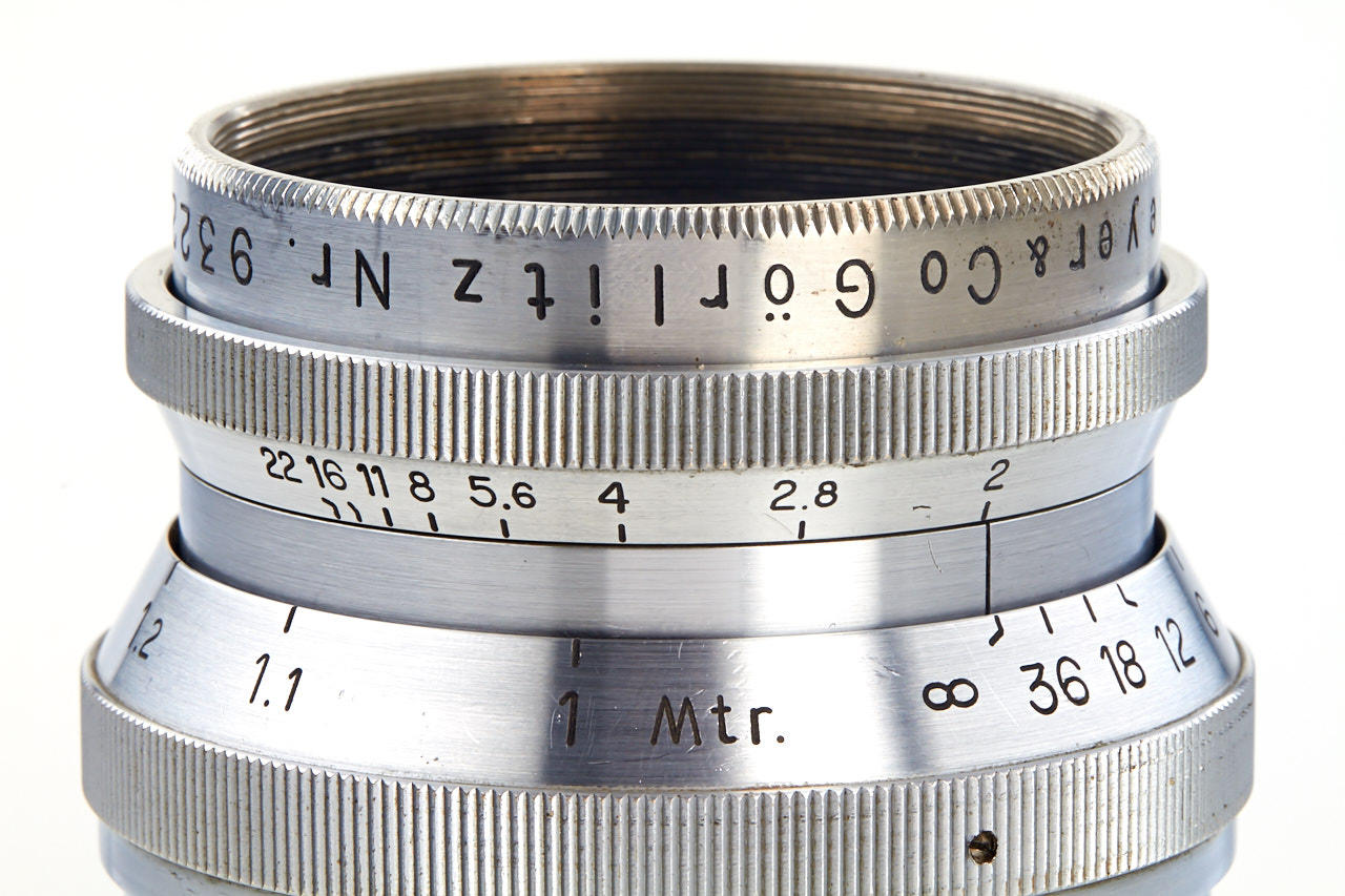 one of the most rare lenses produced by Hugo Meyer, heavy, chromed brass construction, in original Primarflex focusing mount, covering medium format, in excellent condition with nearly perfect optics, only few of these lenses are known to exist