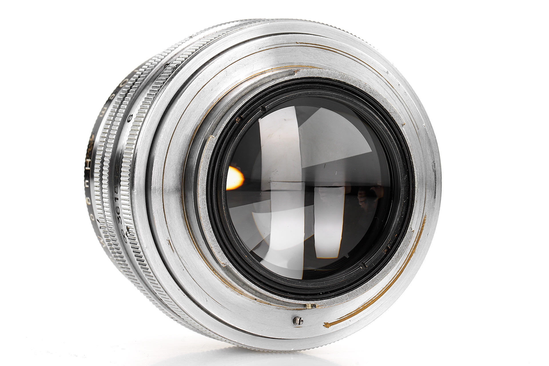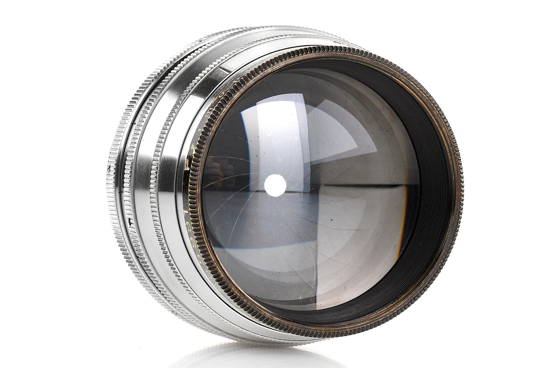 very rare fast lens for the short-lived 1939 Exakta 66, heavy chromed brass construction, in very good condition, very good uncoated optics, with rare hood