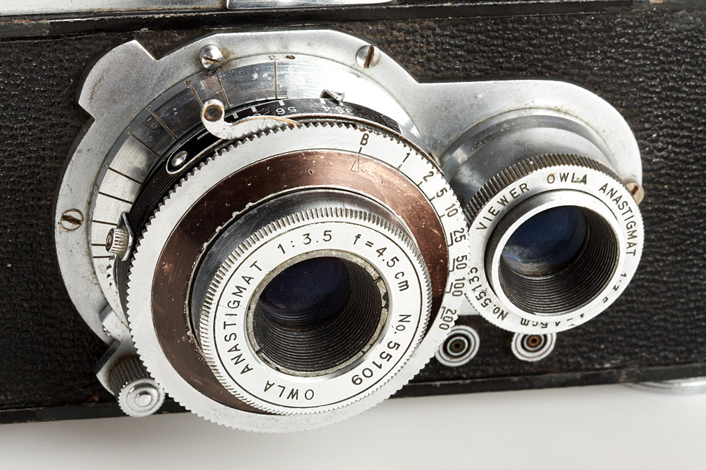 very rare name variation of the Toyoca Toyocaflex "35" side-by-side TLR, in good original condition, Owla Anastigmat 3.5/4.5cm no.55109, shutter release missing