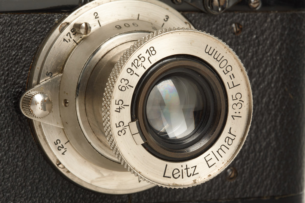 rare camera with Elmar 3.5/50mm (matching number '906' on lens barrel), swinging mask for 13.5cm lenses, in good working order, partly repainted
