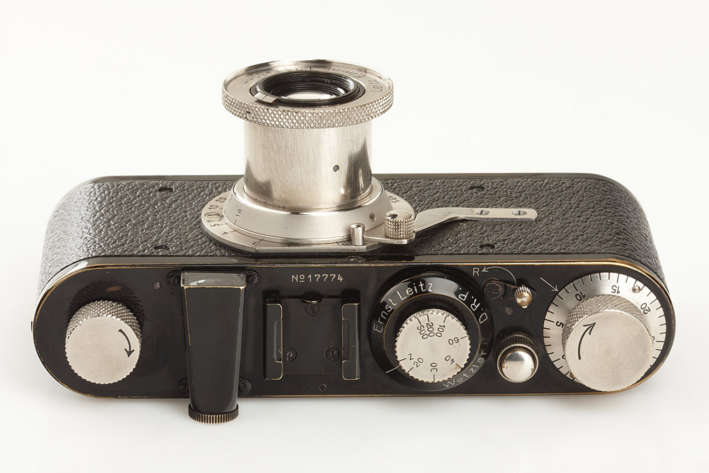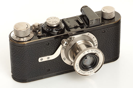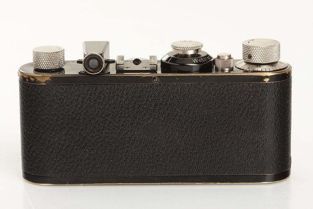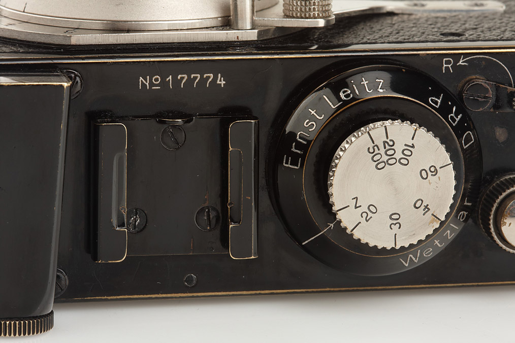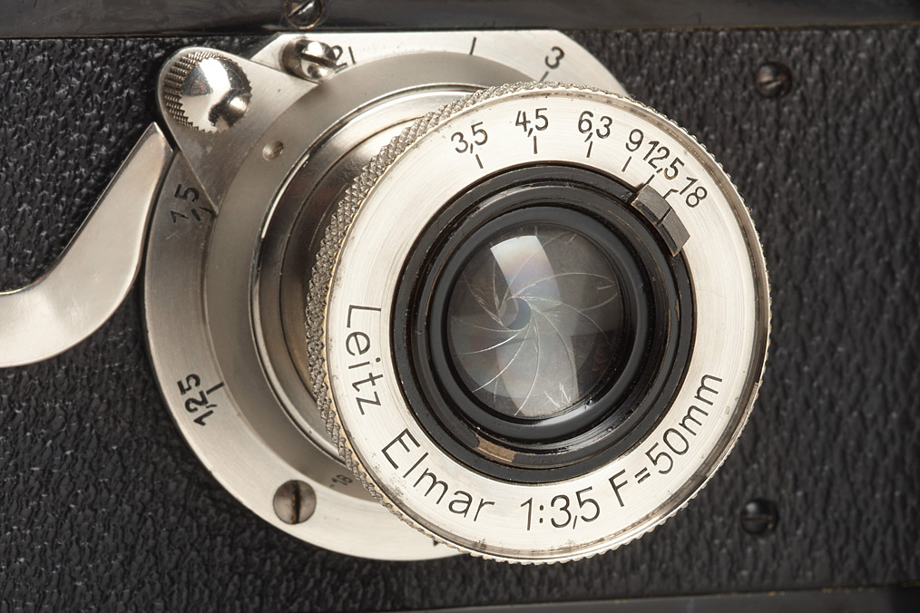 6th version (lit.Von Einem "Die 10 Varianten der klassischen Leica I A mit Elmar 1:3.5 F=50mm") in good condition and in perfect working order, some later parts (accessory shoe, finder)