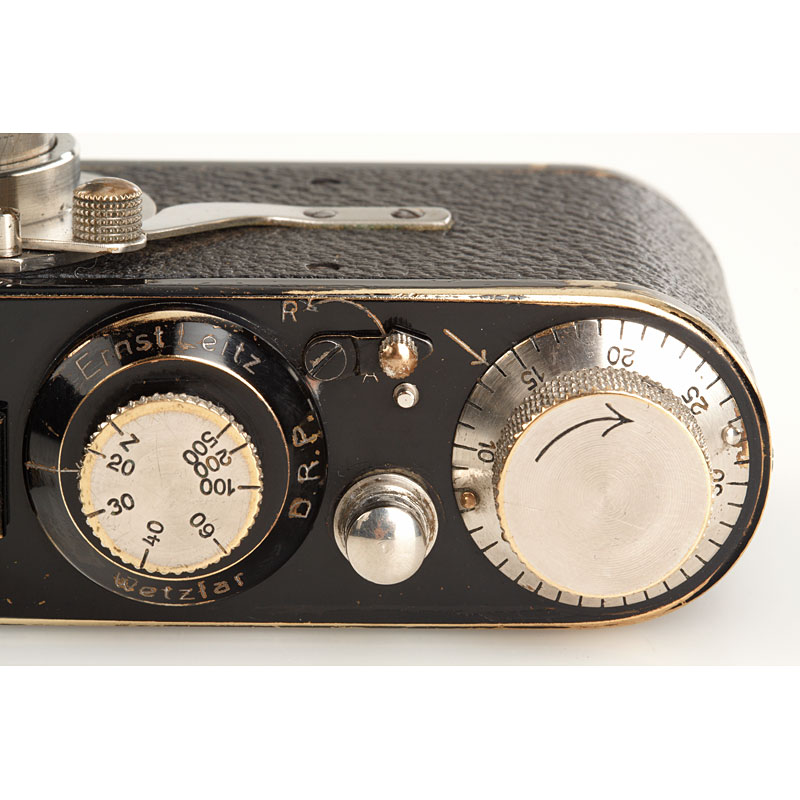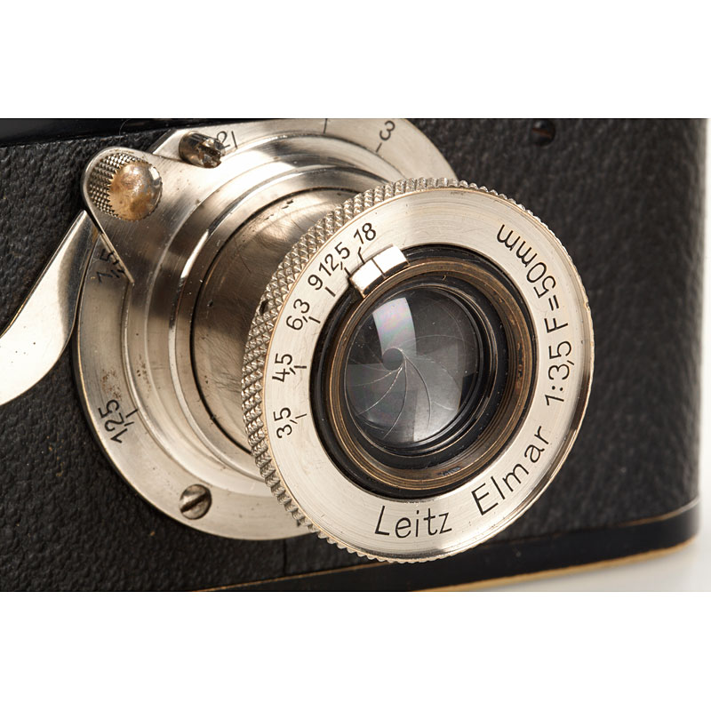 type 6 (lit.Von Einem 'Die 10 Varianten der klassischen Leica I A mit Elmar 1:3.5 F=50mm') in good condition, black painted cap, ETRUX leather case (1st type, opener broken)