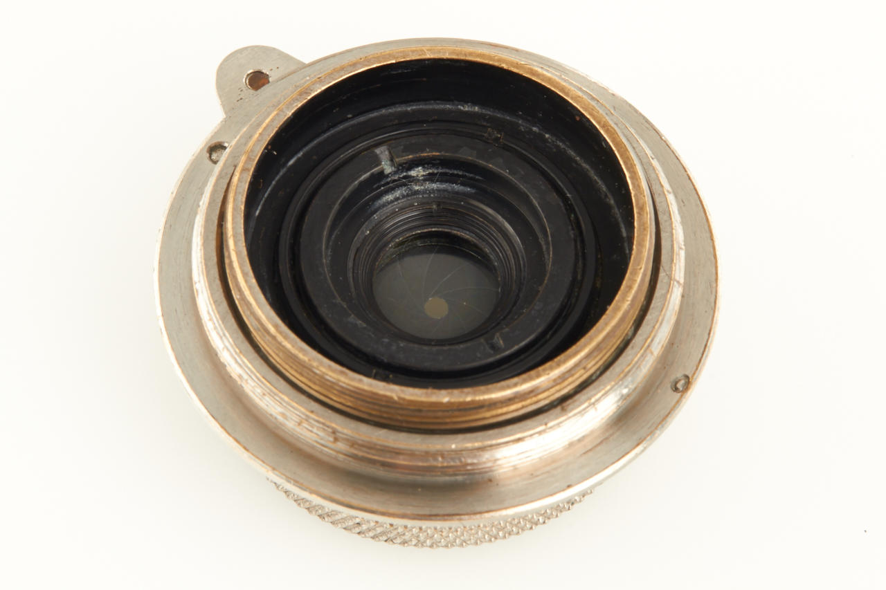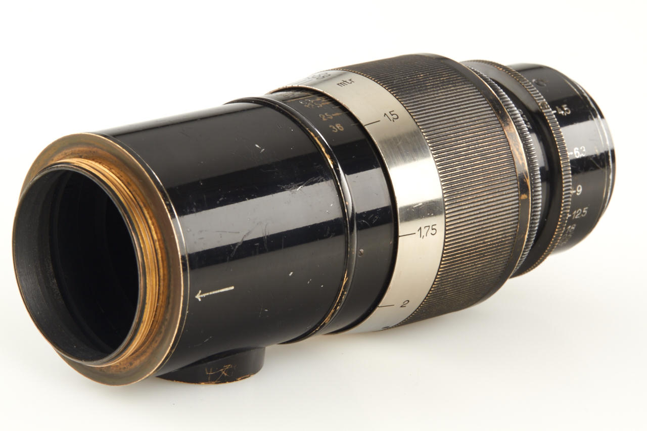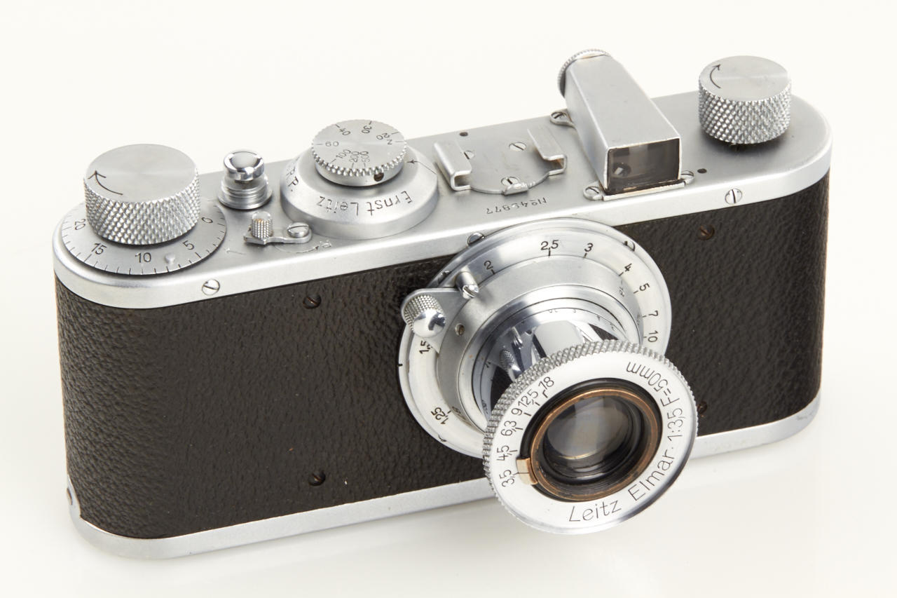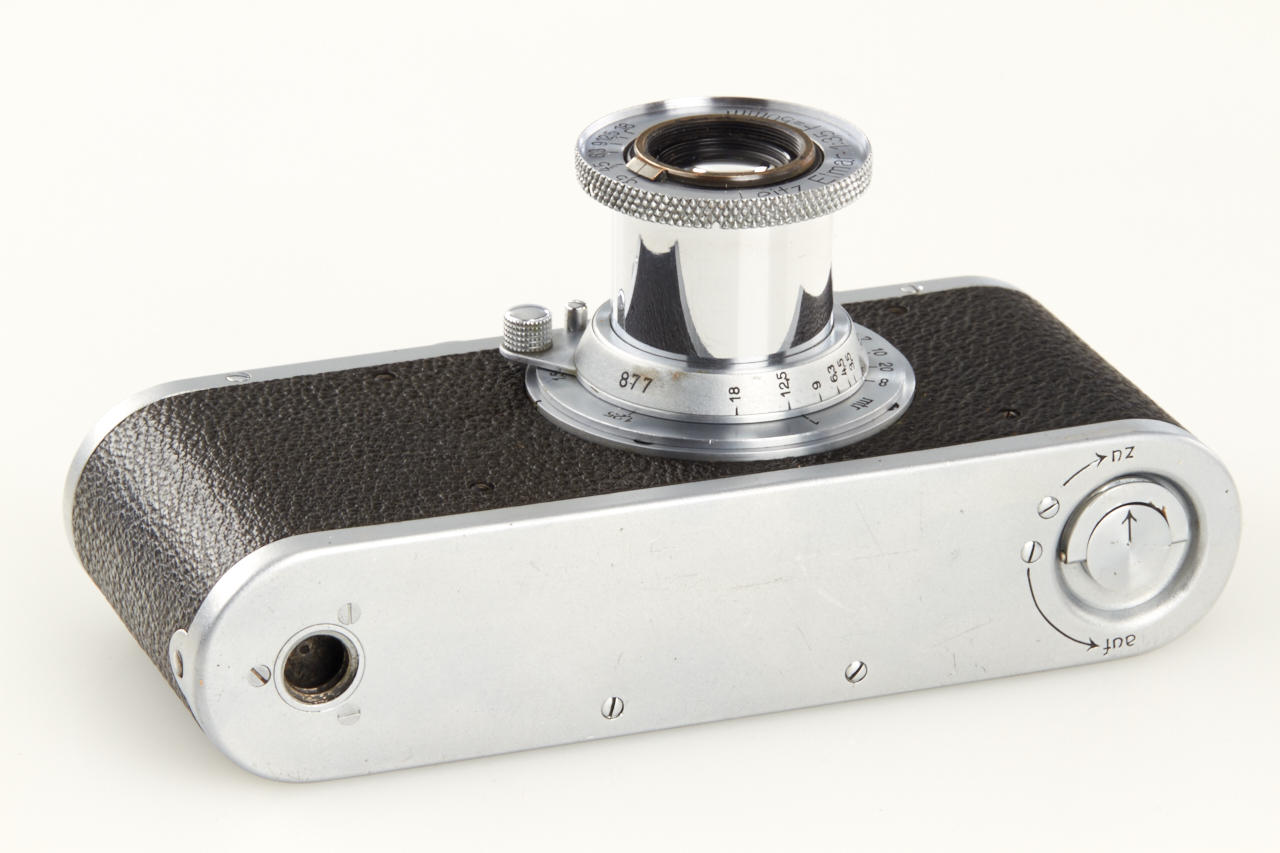 very interesting IC non-standard mount outfit with three matching lenses: Elmar 3.5/50mm, Elmar 3.5/3.5cm, uncoupled Elmar 4.5/135mm - all lenses engraved '877' on barrel, the camera and the Elmar 50mm have been re-chromed by Leitz in the late 30's, other than that the outfit includes VISOR torpedo finder, WINKO right angle finder, FODIS rangefinder, early STEREOLY no.931 with removable arm, early FISON hood without set screw and six filters, everything in early fitted leather outfit case