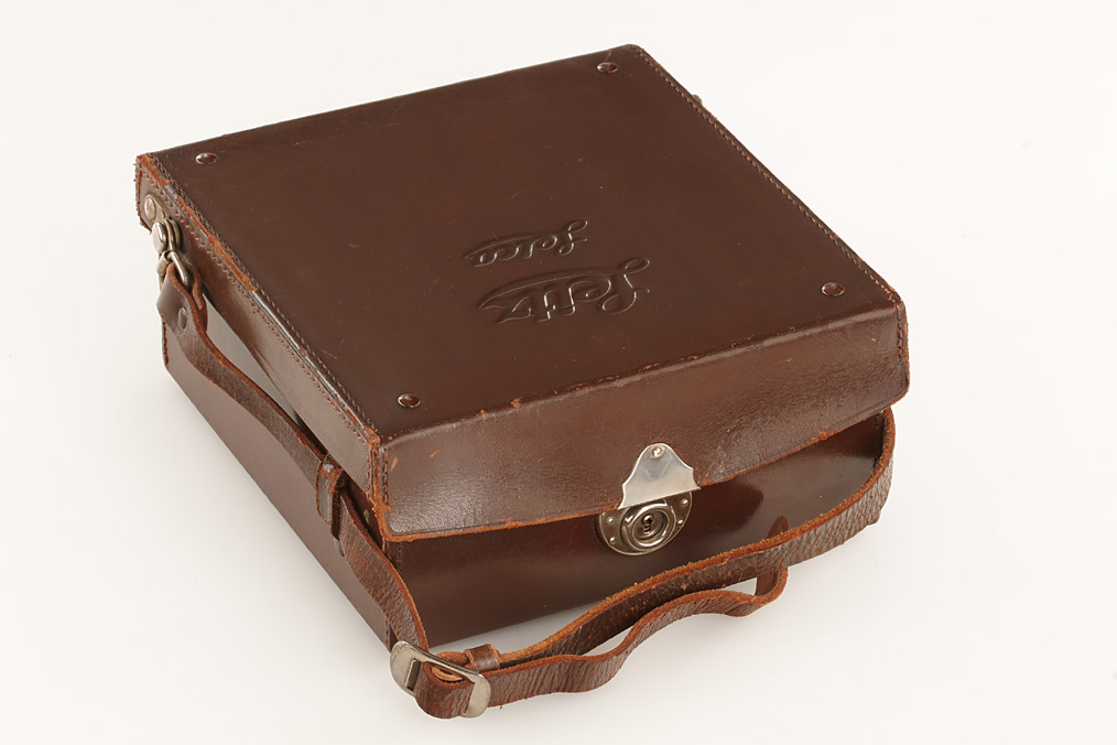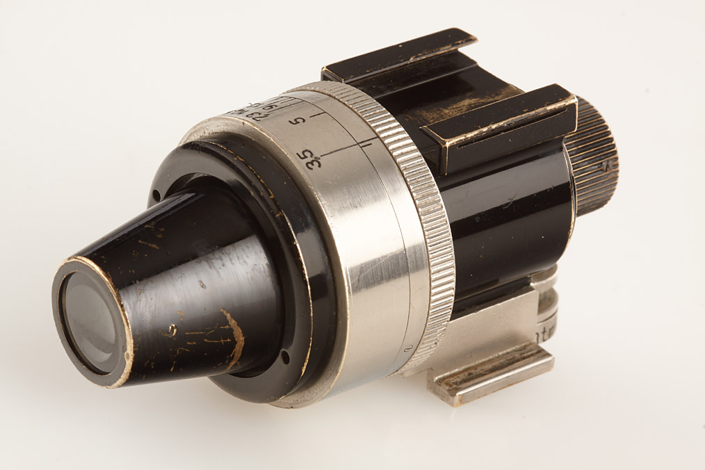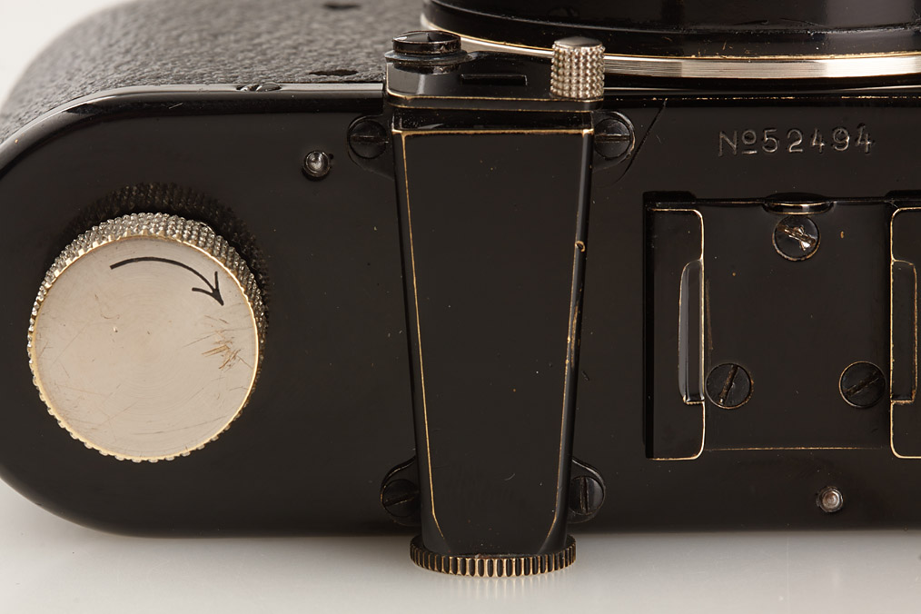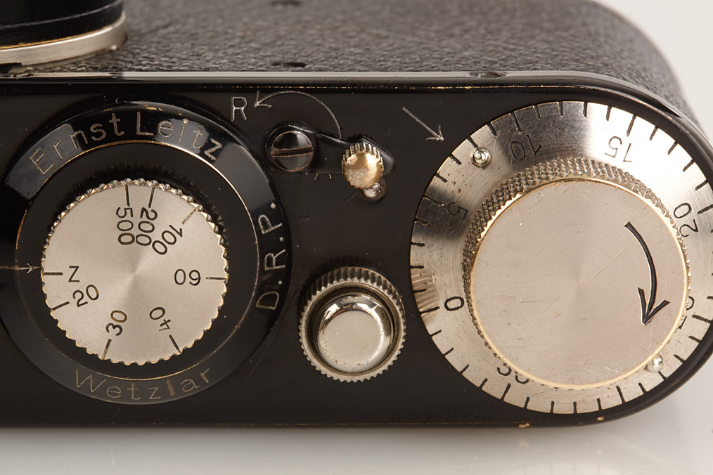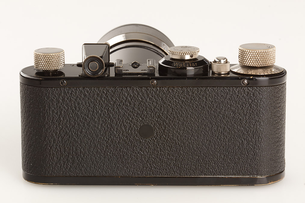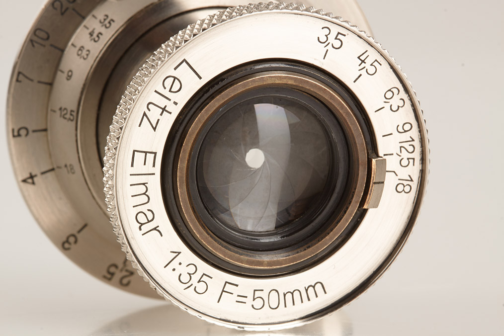 fully original I Mod. C Non Standard with two matching lenses and accessories in leather outfit case: Elmar 3.5/50mm and Elmar 4.5/13.5cm (both engraved '494' on barrel), base plate engraved 'auf-zu', swinging mask for 13.5cm, FOFER rangefinder (case), black/nickel VIDOM universal finder, WINKO right angle finder, film container with B cassette, 2 close-up lenses (ELPRO, ELPIK), A36 yellow and UVa filter (FIGRO and FIOLA), early black/nickel FIKUS hood, rare outfit of the first Leica for interchangeable lenses in very fine condition