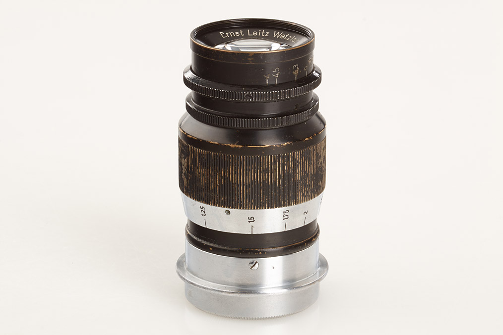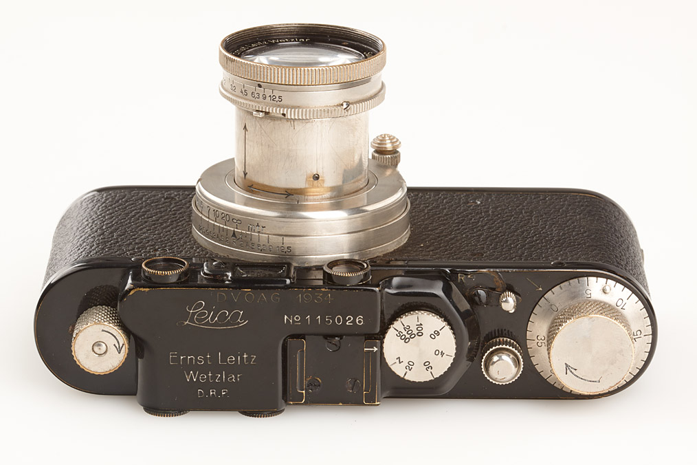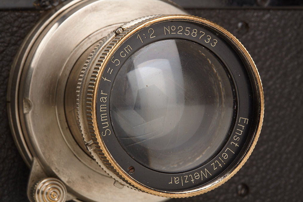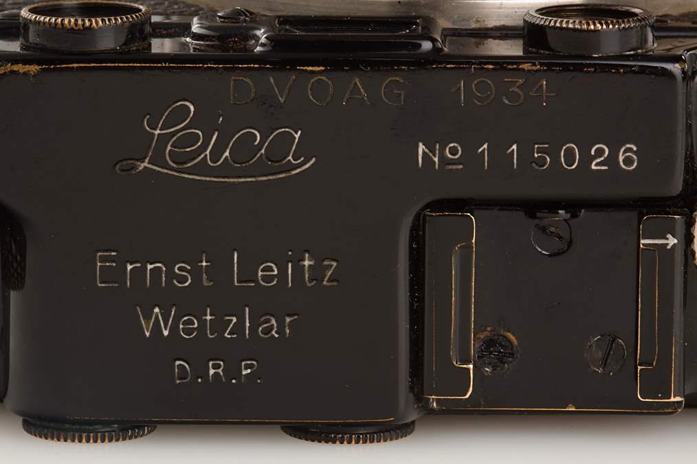 body in very fine condition and good working order, top plate engraved 'DVOAG 1934' (Deutsche VACUUM OIL A.G. - later MOBIL), with matching nickel Summar 2/5cm no.258733 (cap), black/chrome Elmar 4/9cm no.373935 (caps), VIDOM finder, two spools in metal container and small Leitz outfit case, body delivered on June 12th, 1934 to M. & W. Berlin (delivery number 1847), Summar delivered to M. & W. Hamburg on April 9th, 1936 (delivery number 8282), Elmar delivered on February 12th, 1938 to New York (delivery number 1942) - The company was founded 1866 (Vacuum Oil Company of Rochester, N.Y.) ran through several name changes until 1955 from Deutsche Vacuum Oil in Mobil Oil A.G. in Deutschland, the headquarters is still in Hamburg.