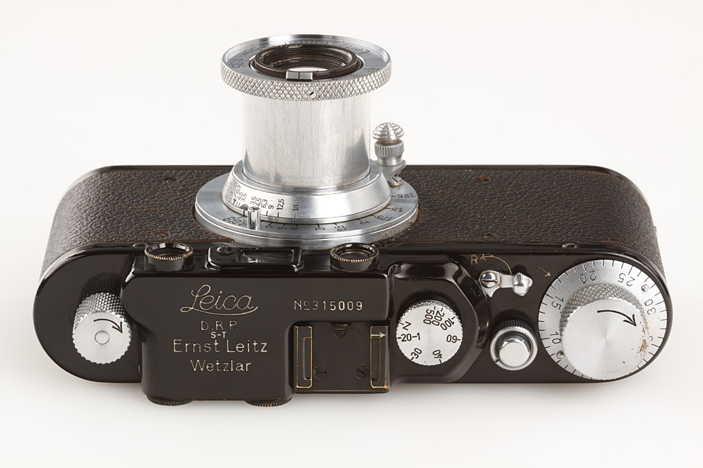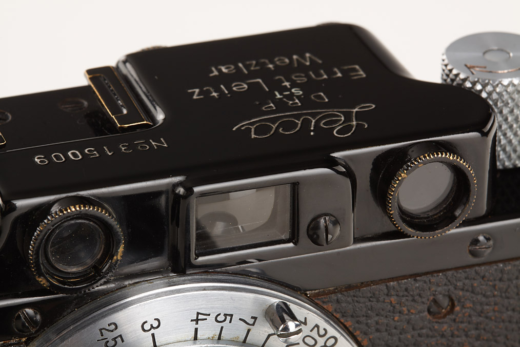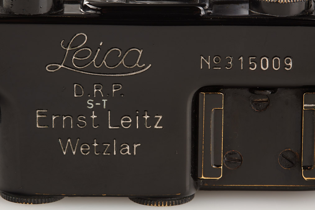 quite rare black Leica II with chrome fittings in near mint and perfect working condition, engraved 'S-T' on top plate (Specialite Tiranty), matching chrome Elmar 3.5/5cm no.393983